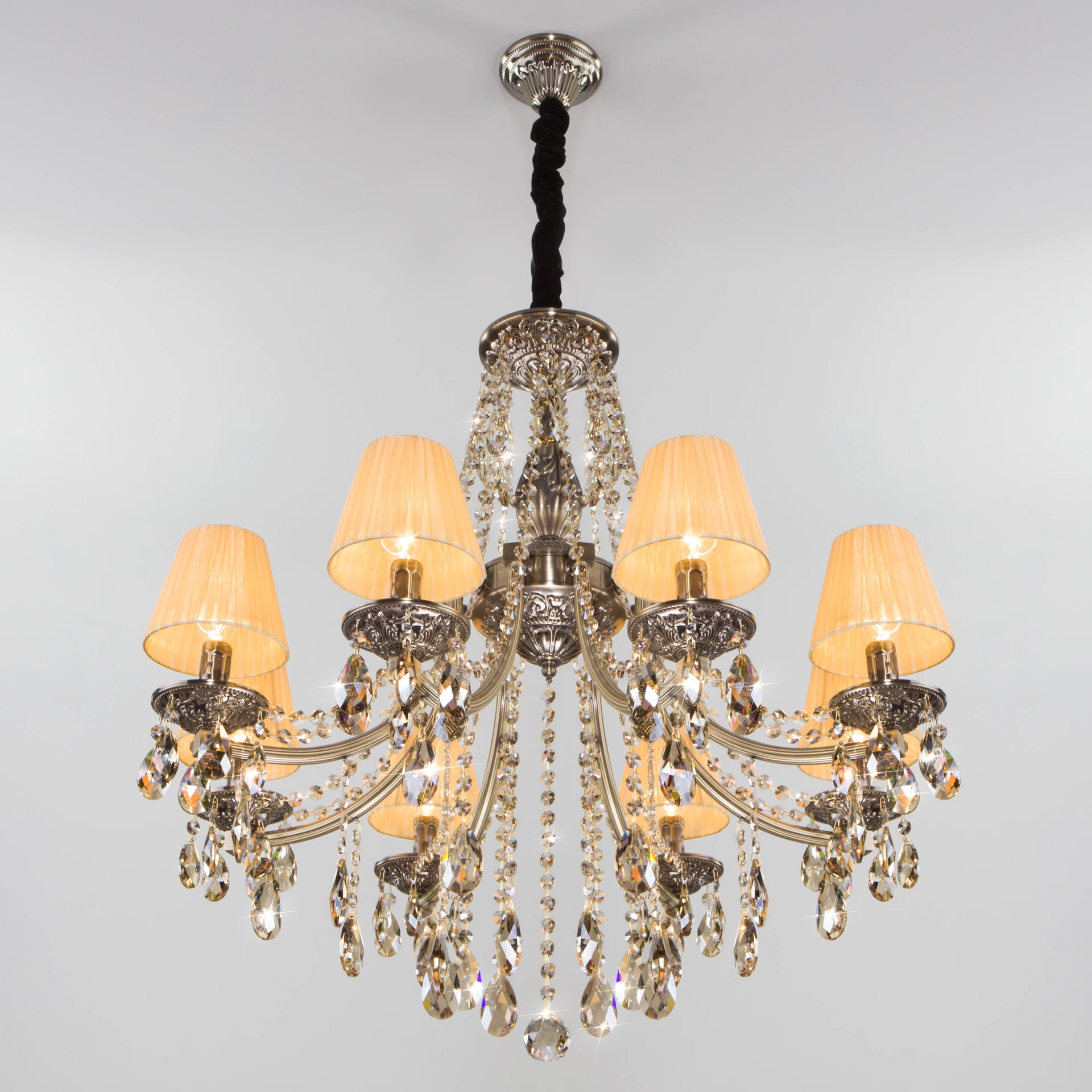 Подвесная люстра Bogates Liguria 315/8 Strotskis от Bogates, подходит для гостиной, в стиле классика, хрусталь. Материал — металл, цвет античная бронза, плафон из ткань, цвет плафона желтый, форма плафона — круглый абажур. Модель имеет 8 ламп, цоколь E14, мощность 40 Вт. Крепление — крюк. Степень защиты IP20. Габариты: высота 1240 мм, ширина 790 мм. Декор — хрустальные подвески, коллекция Liguria.