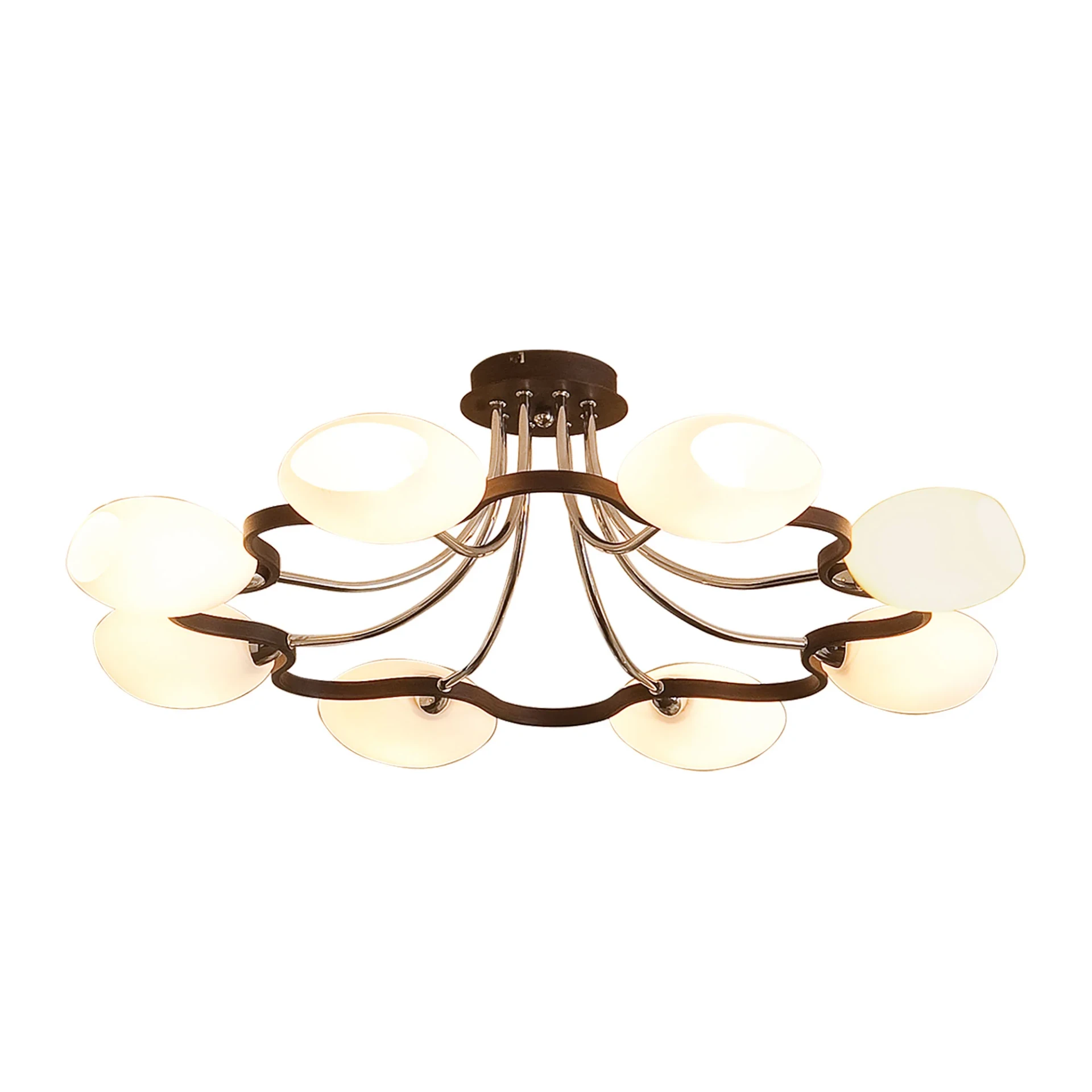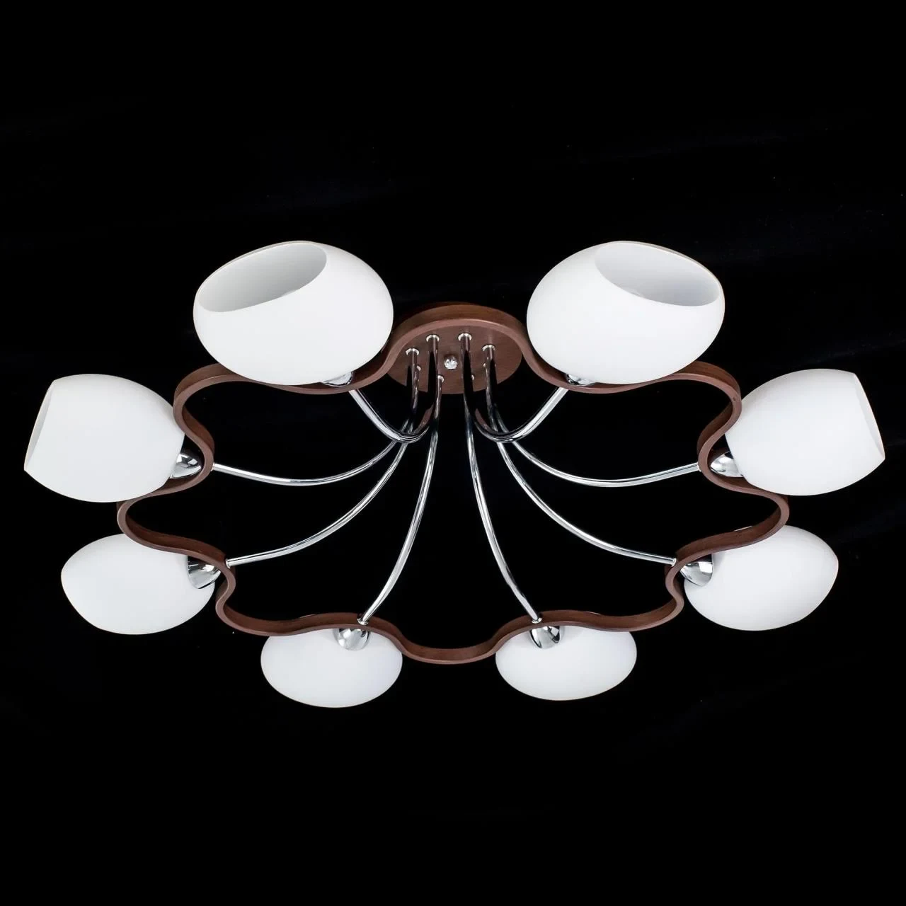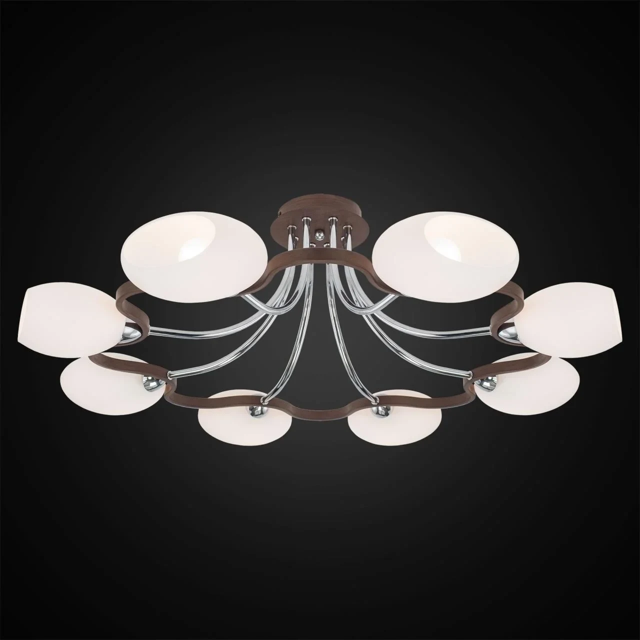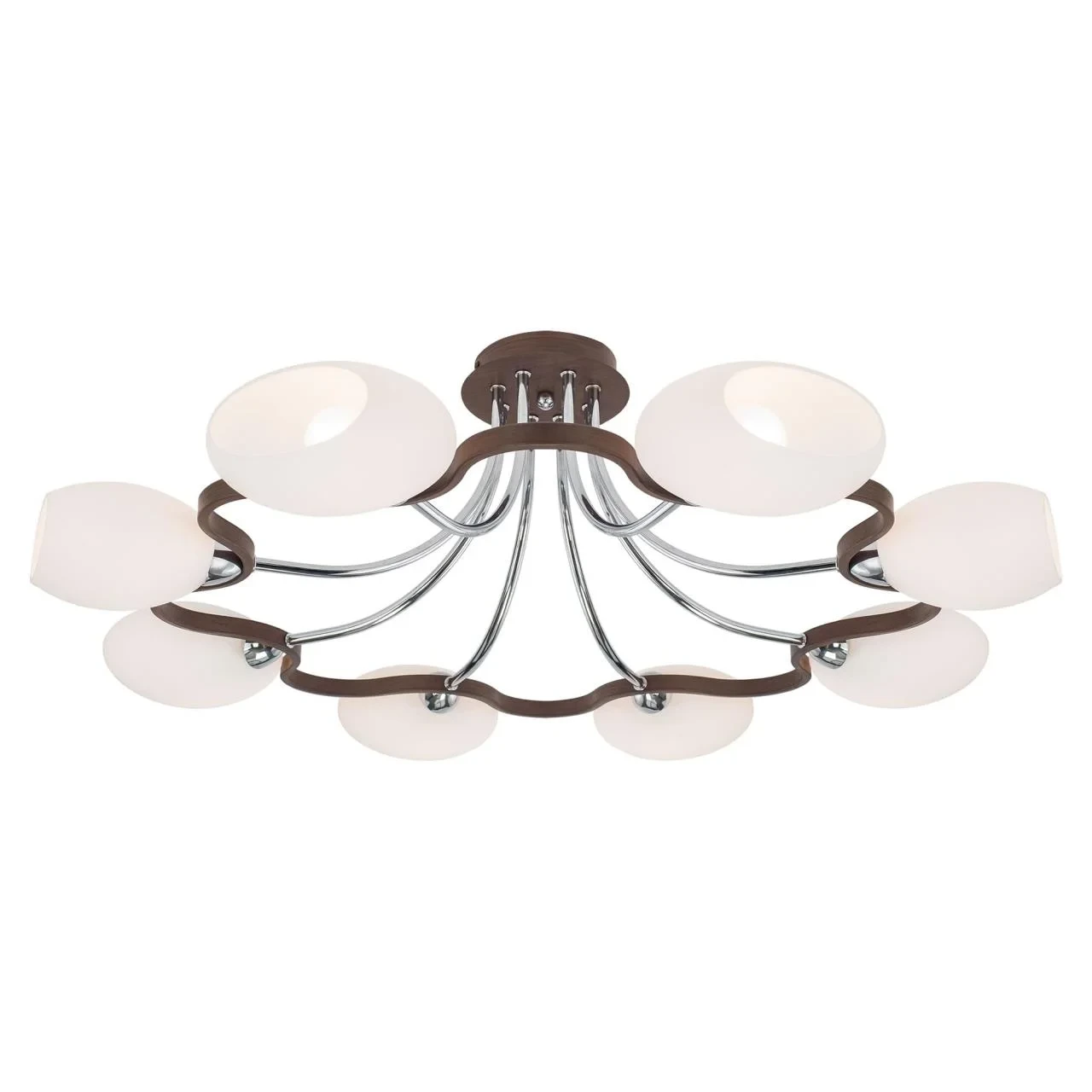 Потолочная люстра Citilux Октава CL131181 от Citilux, подходит для спальни, в стиле современный. Материал — металл, цвет венге, плафон из стекла, цвет плафона белый, форма плафона — сплюснутые. Модель имеет 8 ламп, цоколь E14, мощность 60 Вт. Поддержка диммера. Габариты: высота 260 мм, ширина 810 мм, диаметр 810 мм.