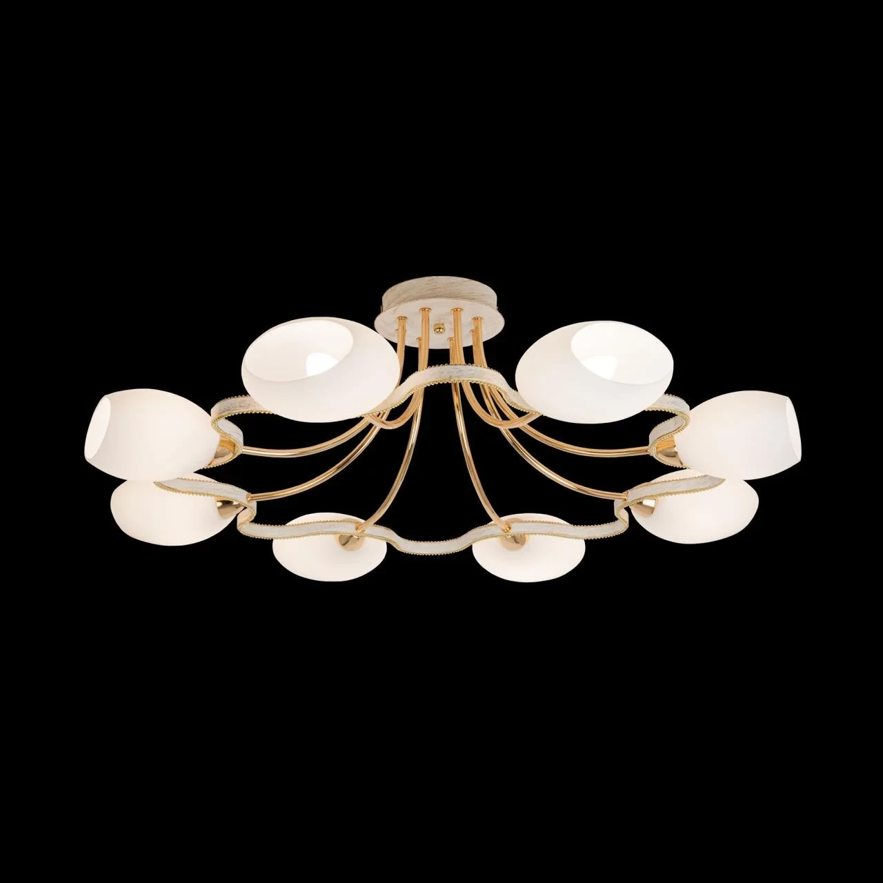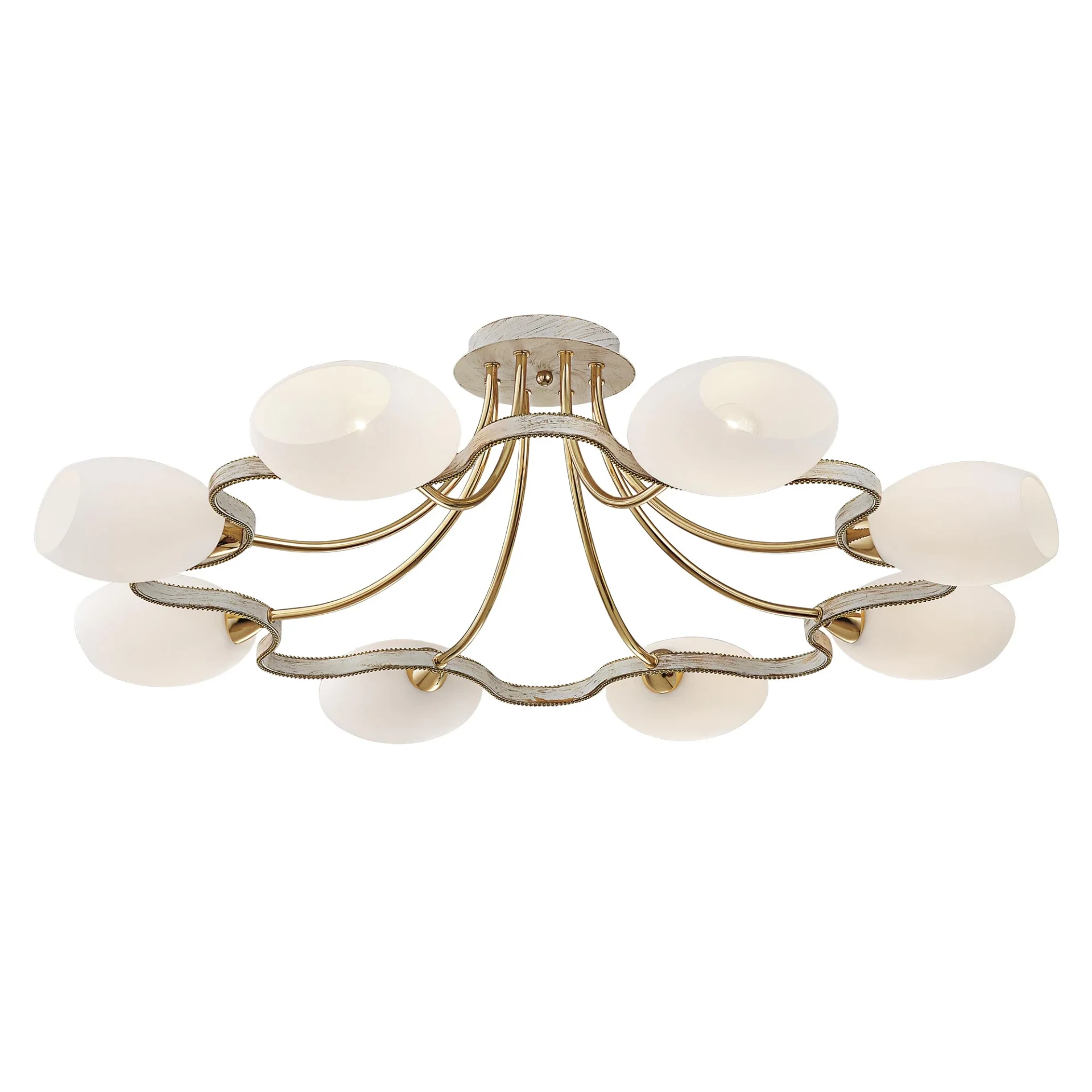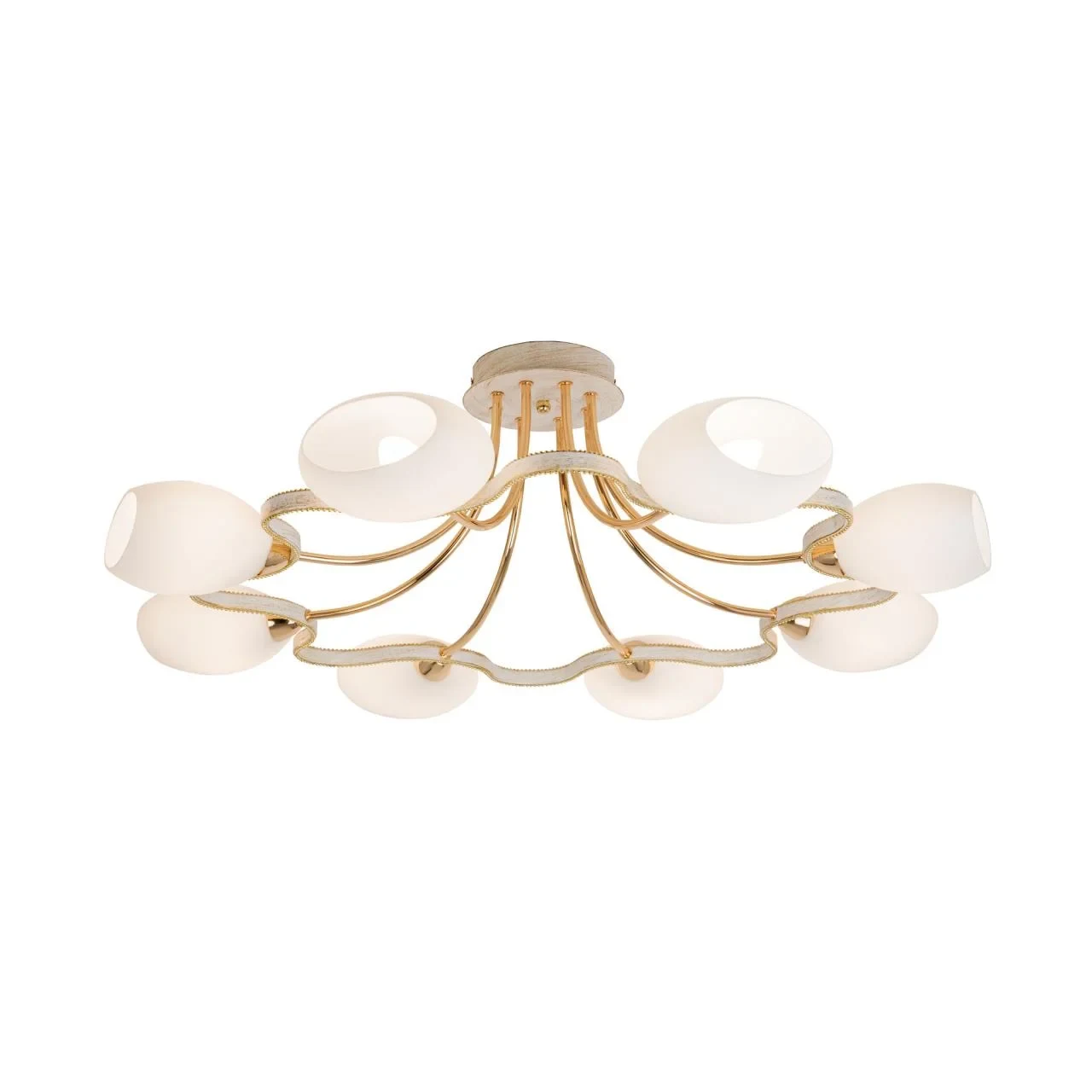 Потолочная люстра Citilux Октава CL131183 от Citilux, подходит для спальни, в стиле современный. Материал — металл, цвет белый, плафон из стекла, форма плафона — сплюснутые. Модель имеет 8 ламп, цоколь E14, мощность 60 Вт. Поддержка диммера. Габариты: высота 270 мм, ширина 830 мм, диаметр 830 мм.
