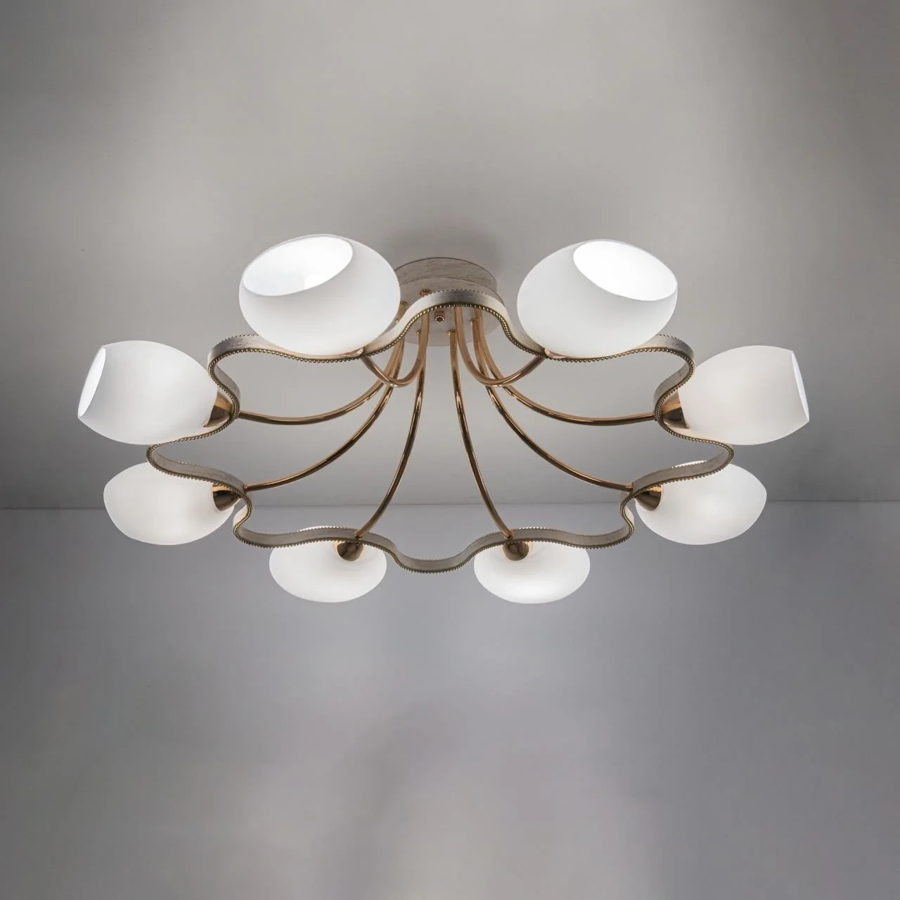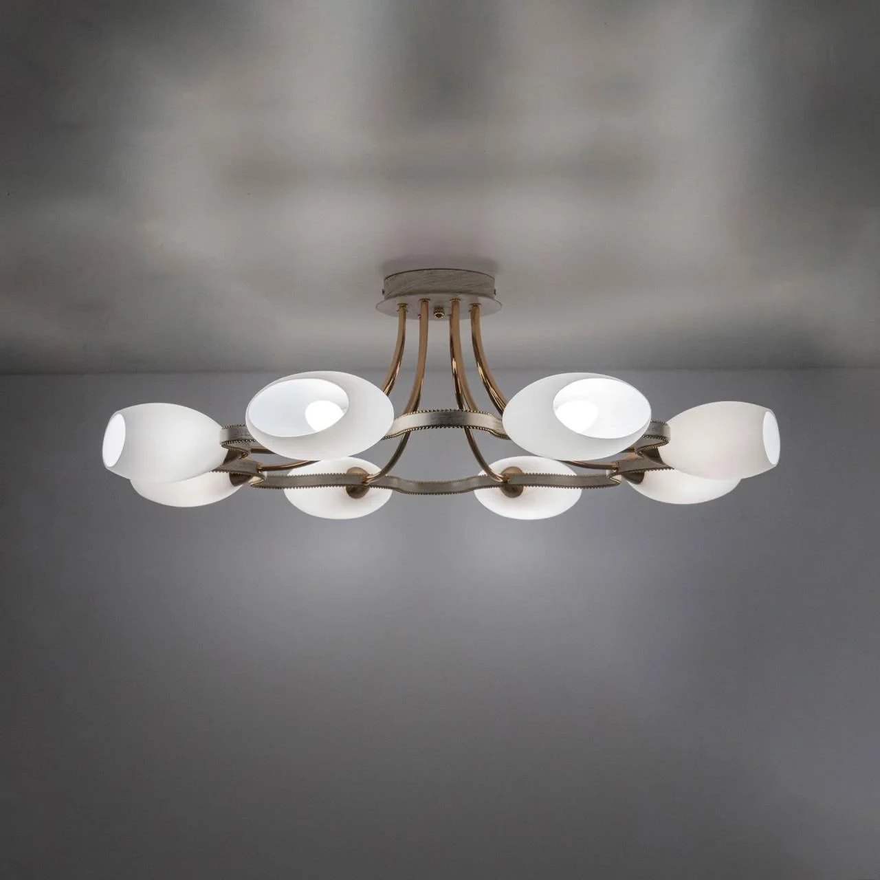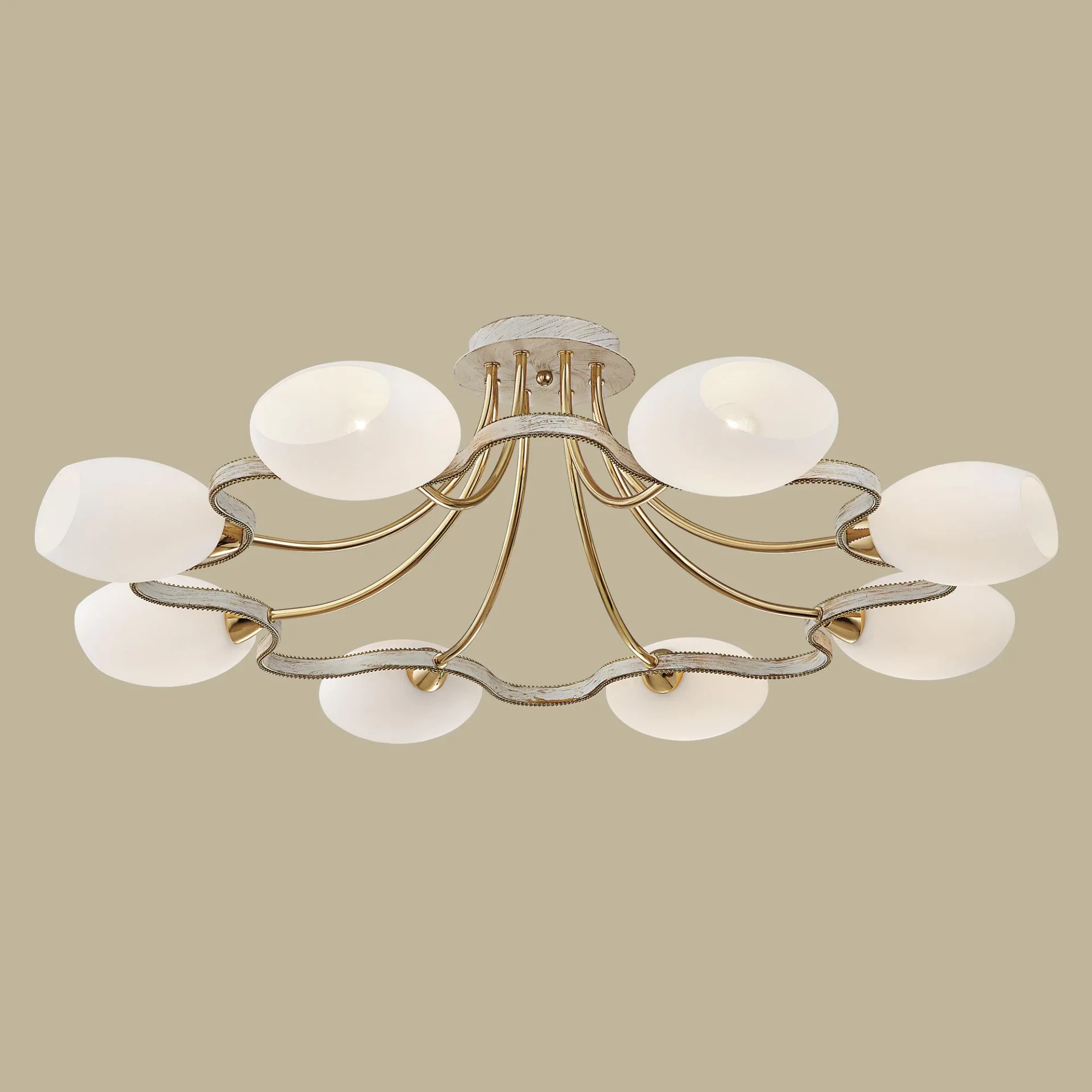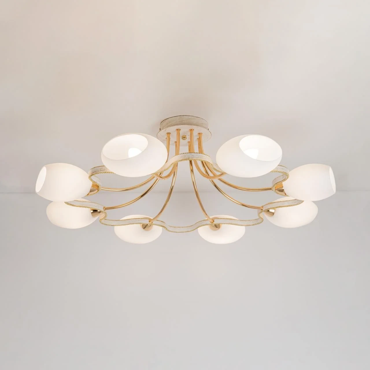Потолочная люстра Citilux Октава CL131183 от Citilux, подходит для спальни, в стиле современный. Материал — металл, цвет белый, плафон из стекла, форма плафона — сплюснутые. Модель имеет 8 ламп, цоколь E14, мощность 60 Вт. Поддержка диммера. Габариты: высота 270 мм, ширина 830 мм, диаметр 830 мм.