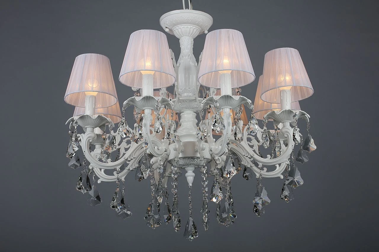 Подвесная люстра Omnilux Catanzaro OML-30807-08 от Omnilux, подходит для гостиной, в стиле классика. Материал — металл, цвет белый, плафон из ткань. Модель имеет 8 ламп, цоколь E14. Габариты: высота 1500 мм, ширина 700 мм, диаметр 700 мм. Декор — хрустальные подвески.