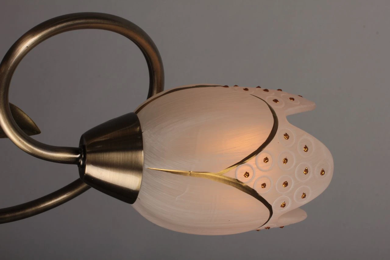 Потолочная люстра Omnilux Vallage OML-37907-03 от Omnilux, подходит для спальни, в стиле современный, прованс, флористика. Материал — металл, цвет бронза, плафон из стекла, цвет плафона белый, форма плафона — с узором. Модель имеет 3 лампы, цоколь E14, мощность 180 Вт. Поддержка диммера, направление света — равномерное. Степень защиты IP20. Габариты: высота 180 мм, ширина 500 мм, диаметр 500 мм. Декор — лепестки, ветки, коллекция Vallage.