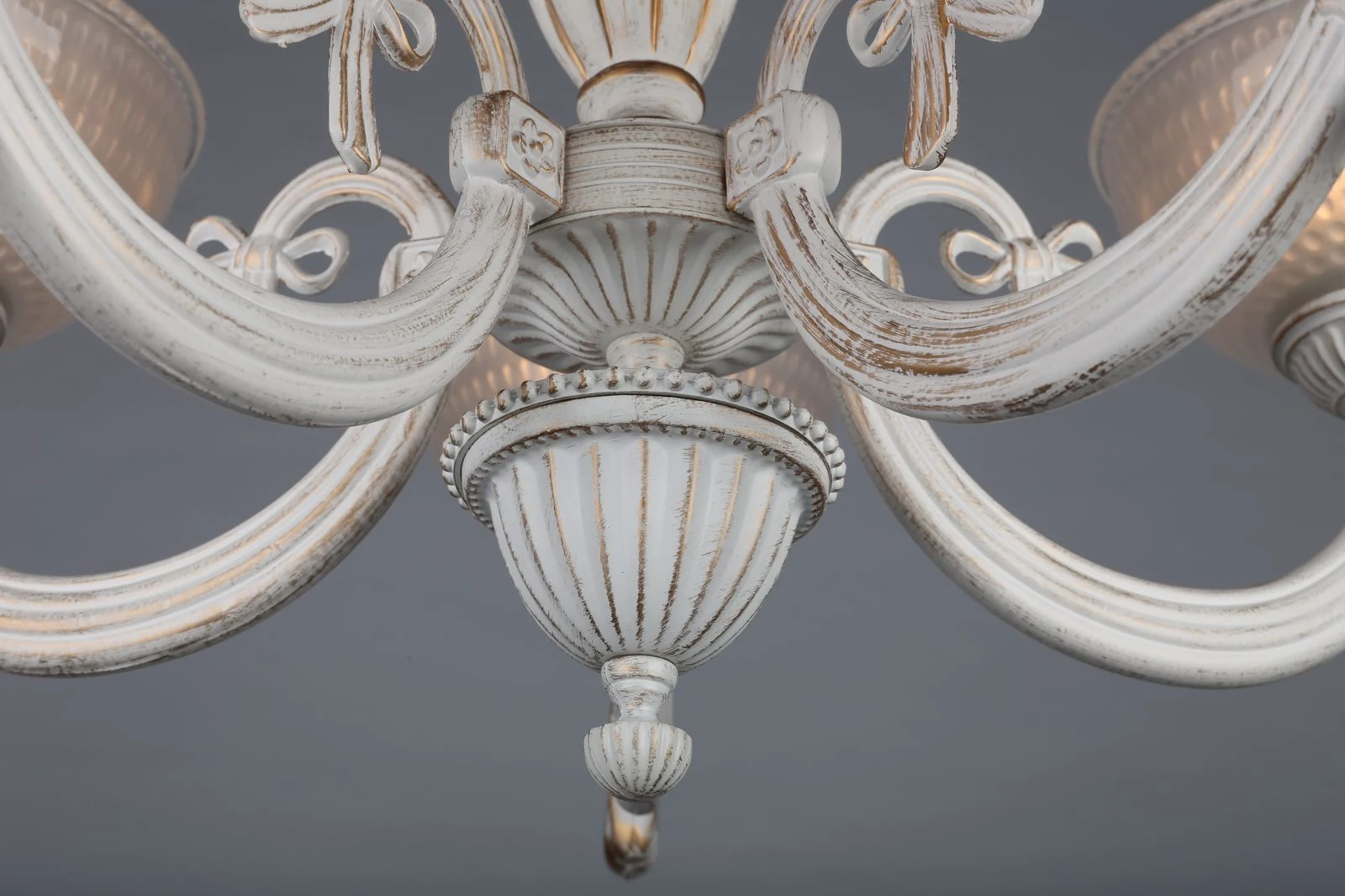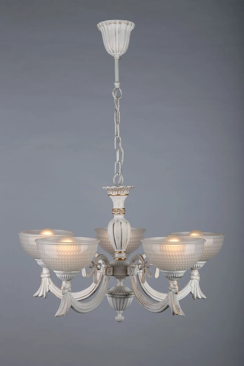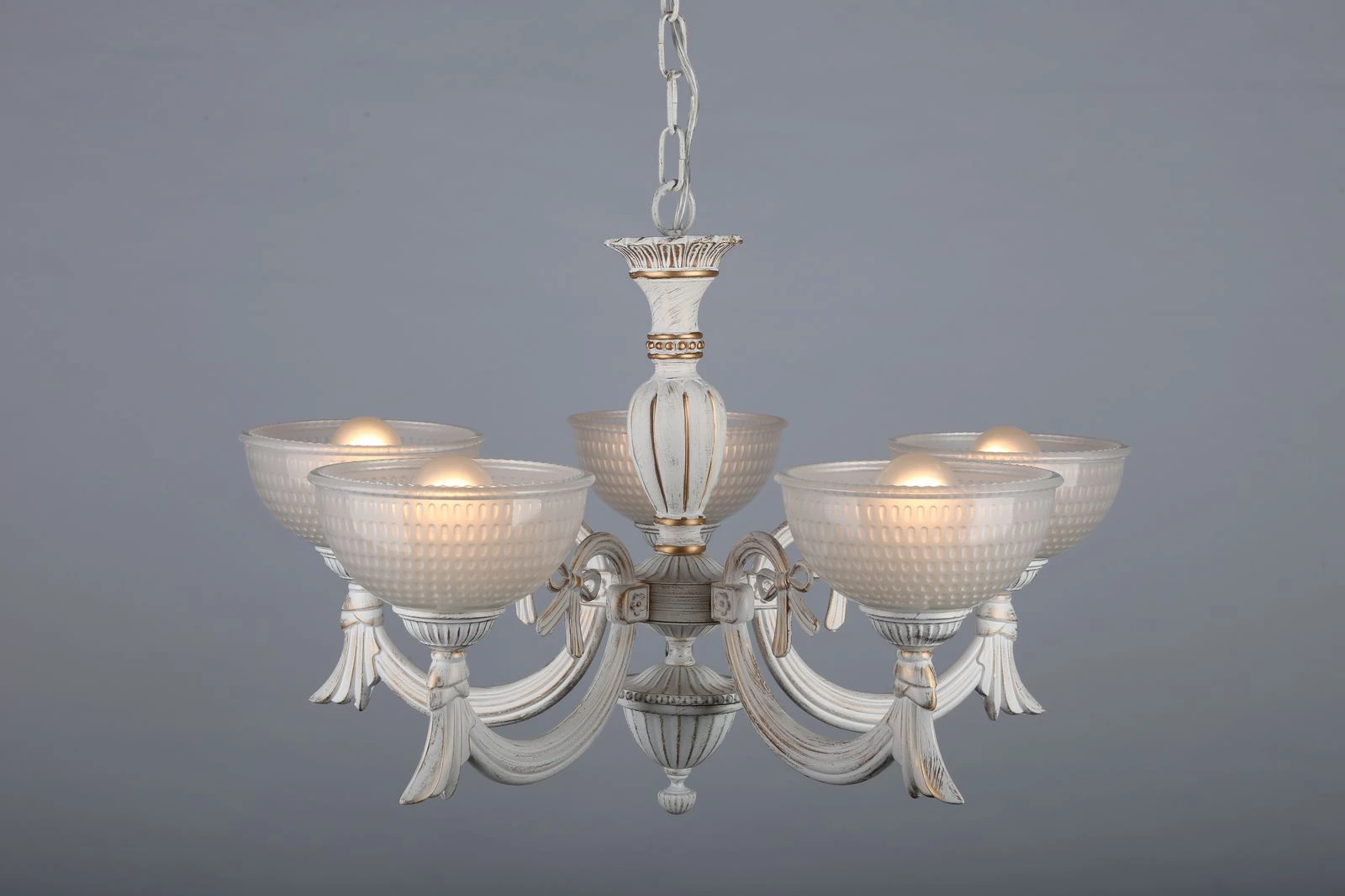 Подвесная люстра Omnilux Lecco OML-60903-05 от Omnilux, подходит для гостиной, для спальни, в стиле прованс. Материал — металл, цвет белый, плафон из стекла, форма плафона — полусфера. Модель имеет 5 ламп, цоколь E27, мощность 60W. Направление света — вверх. Степень защиты IP20. Габариты: высота 750 мм, ширина 600 мм, диаметр 600 мм. Коллекция Lecco.