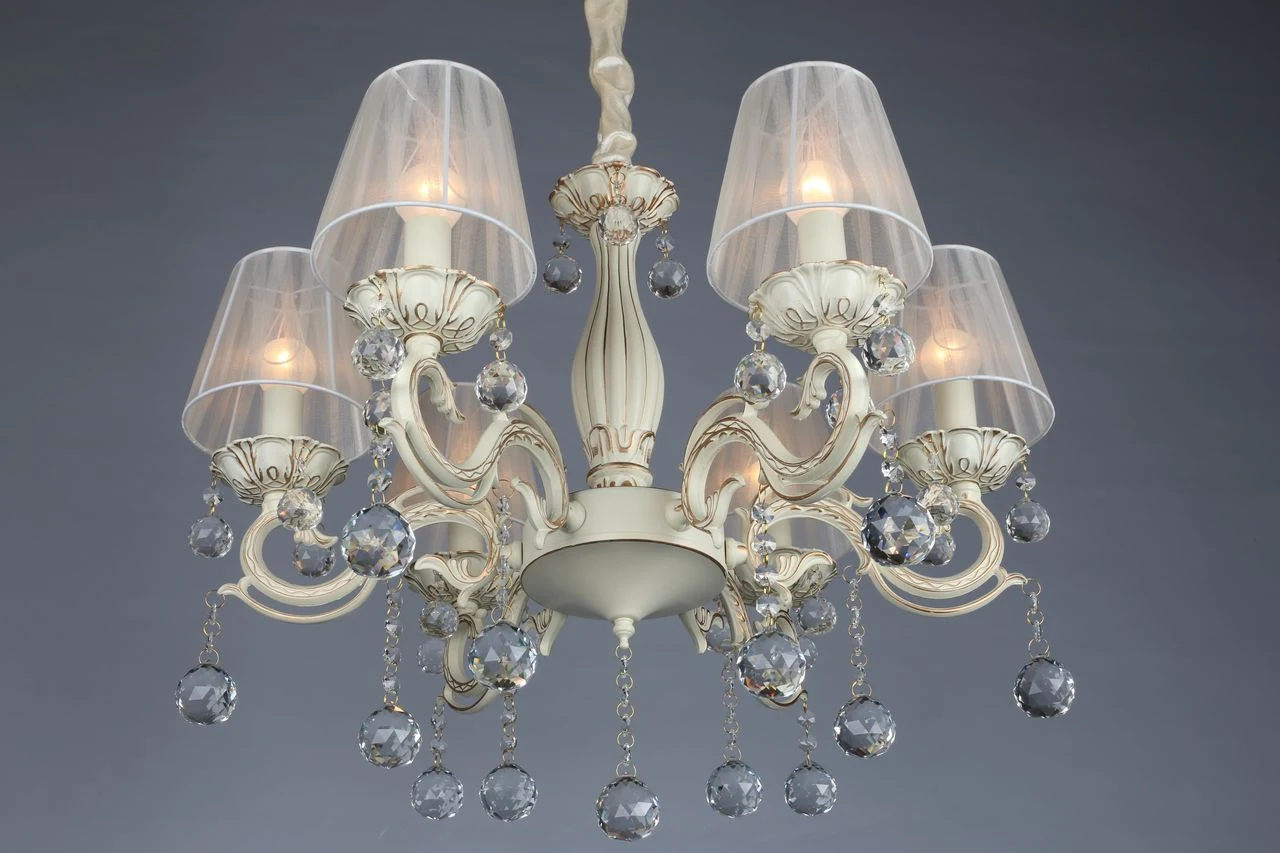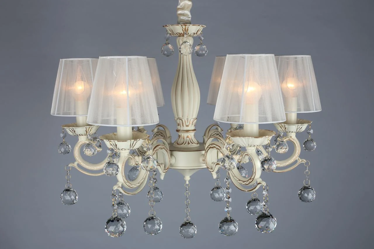 Подвесная люстра Omnilux Biella OML-73303-06 от Omnilux, подходит для гостиной, для спальни, в стиле прованс. Материал — металл, цвет бежевый, плафон из ткань, цвет плафона белый, форма плафона — круглый абажур. Модель имеет 6 ламп, цоколь E14, мощность 240 Вт. Поддержка диммера. Габариты: высота 1100 мм, ширина 700 мм, диаметр 700 мм. Декор — хрустальные подвески, коллекция Biella, возможность регулировки высоты — Есть.
