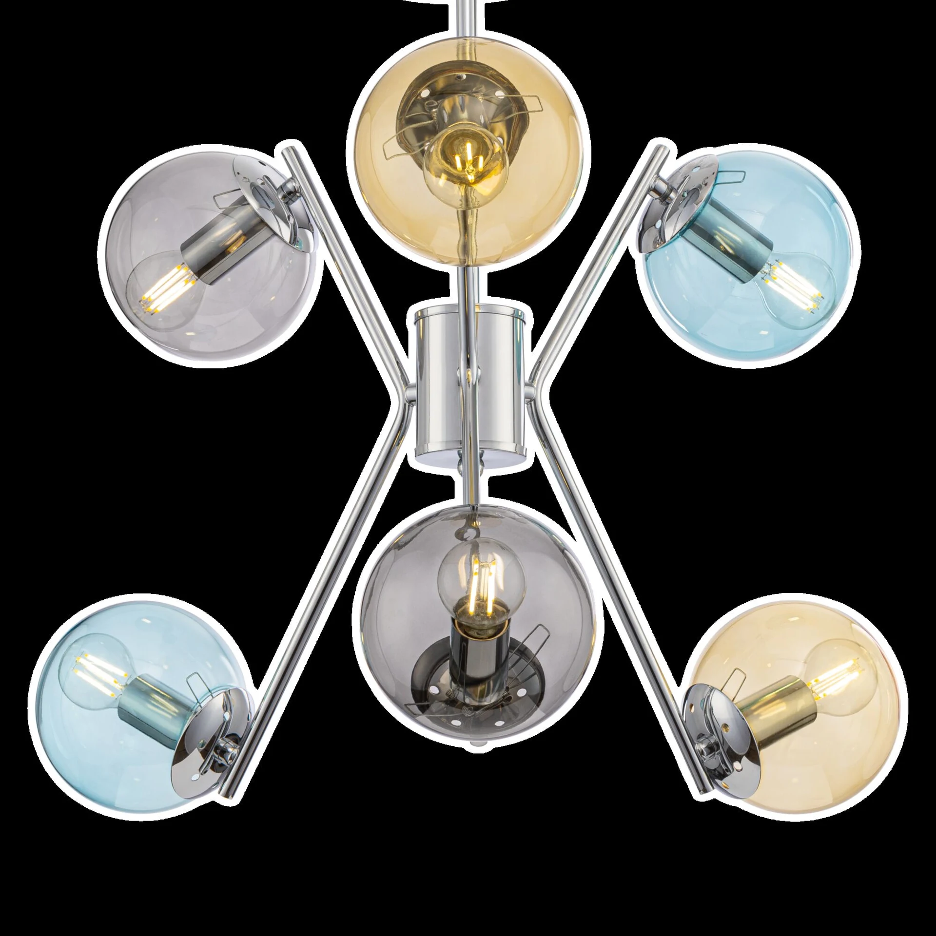 Потолочная люстра Freya Nancy FR5083PL-06CH от Freya, подходит для гостиной, в стиле хай-тек. Материал — металл, цвет хром, плафон из стекла, цвет плафона разноцветный, форма плафона — шар. Модель имеет 6 ламп, цоколь E14, мощность 40 Вт. Крепление — планка. Степень защиты IP20. Габариты: высота 420 мм, ширина 610 мм, диаметр 610 мм. Коллекция Nancy.