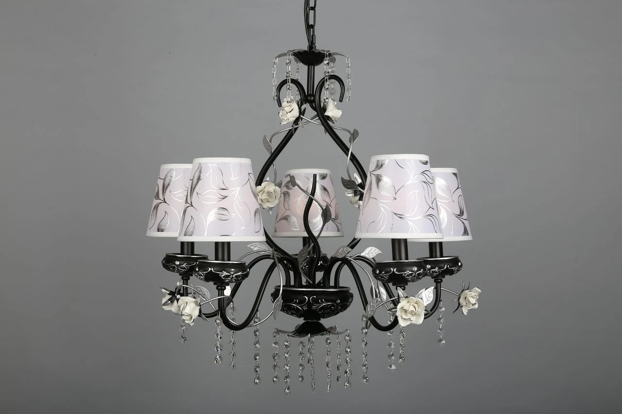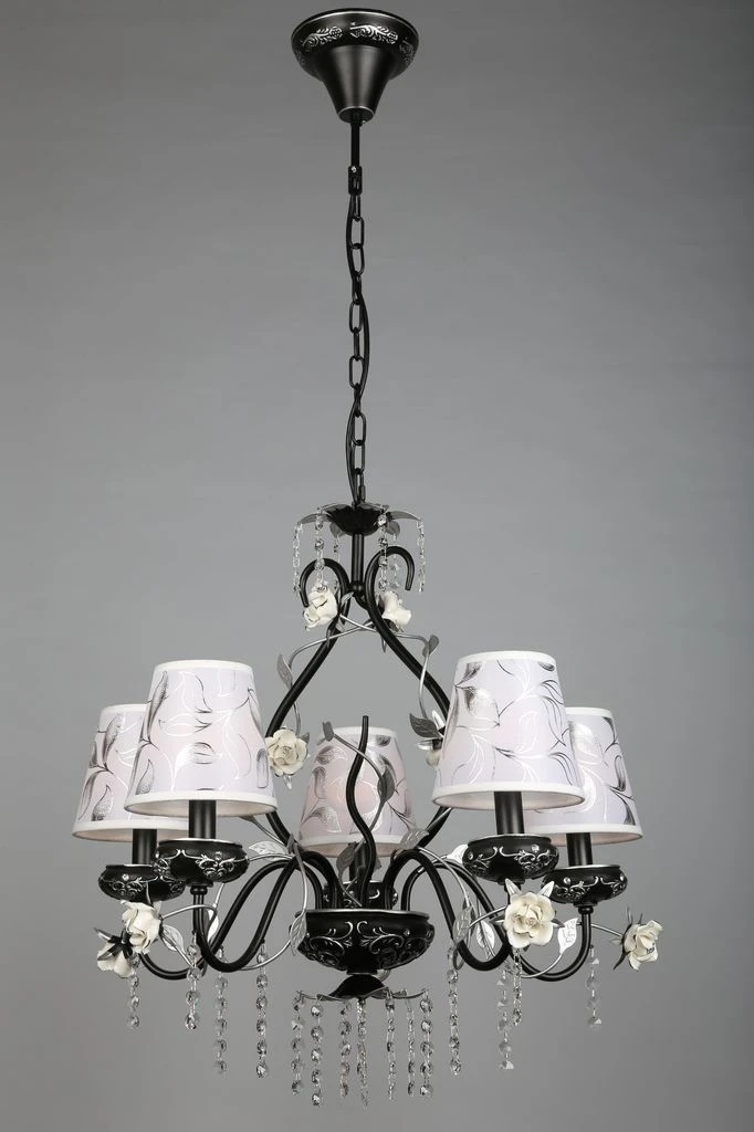 Люстра подвесная с цветочками Lucca OML-77913-05 Omnilux от Omnilux, подходит для спальни, в стиле флористика. Материал — металл, цвет белый, плафон из ткань, форма плафона — круглый абажур. Модель имеет 5 ламп, цоколь E14, мощность 40W. Направление света — вверх. Габариты: высота 1150 мм, ширина 700 мм, диаметр 700 мм. Декор — хрустальные подвески, коллекция Lucca.