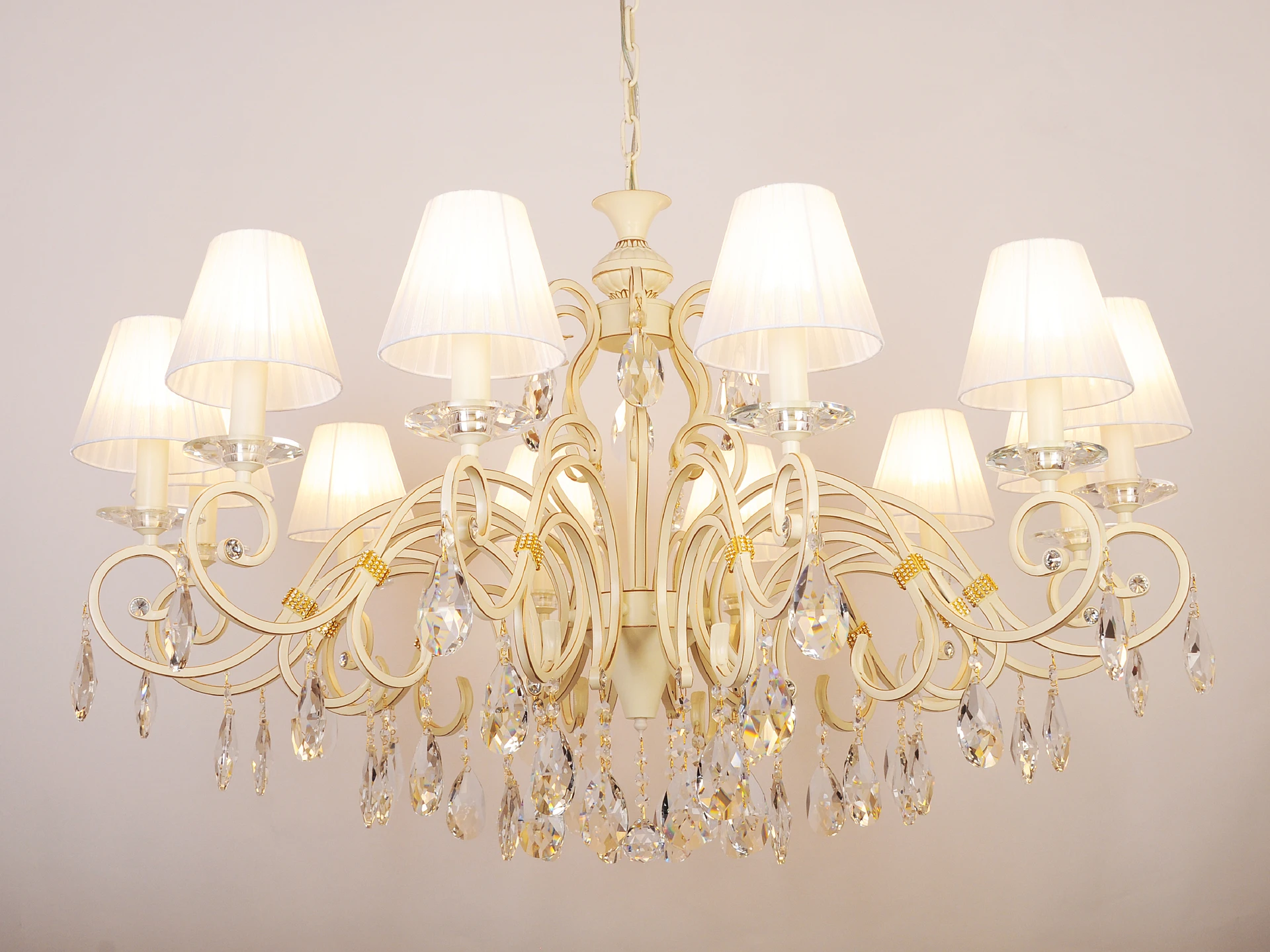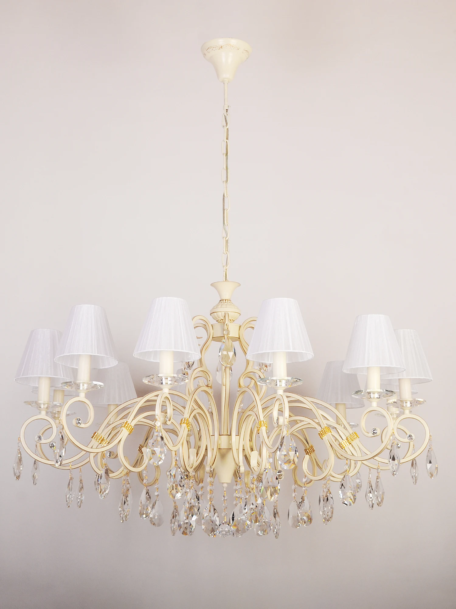 Подвесная люстра Abrasax 1141/12 от Abrasax, подходит для гостиной, в стиле классика, хрусталь. Материал — металл, цвет кремовый, плафон из текстиль, цвет плафона белый, форма плафона — круглый абажур. Модель имеет 12 ламп, цоколь E14, мощность 40 Вт. Крепление — крюк. Степень защиты IP20. Габариты: высота 640 мм, ширина 1060 мм, диаметр 1060 мм. Декор — хрустальные подвески, коллекция 1141.