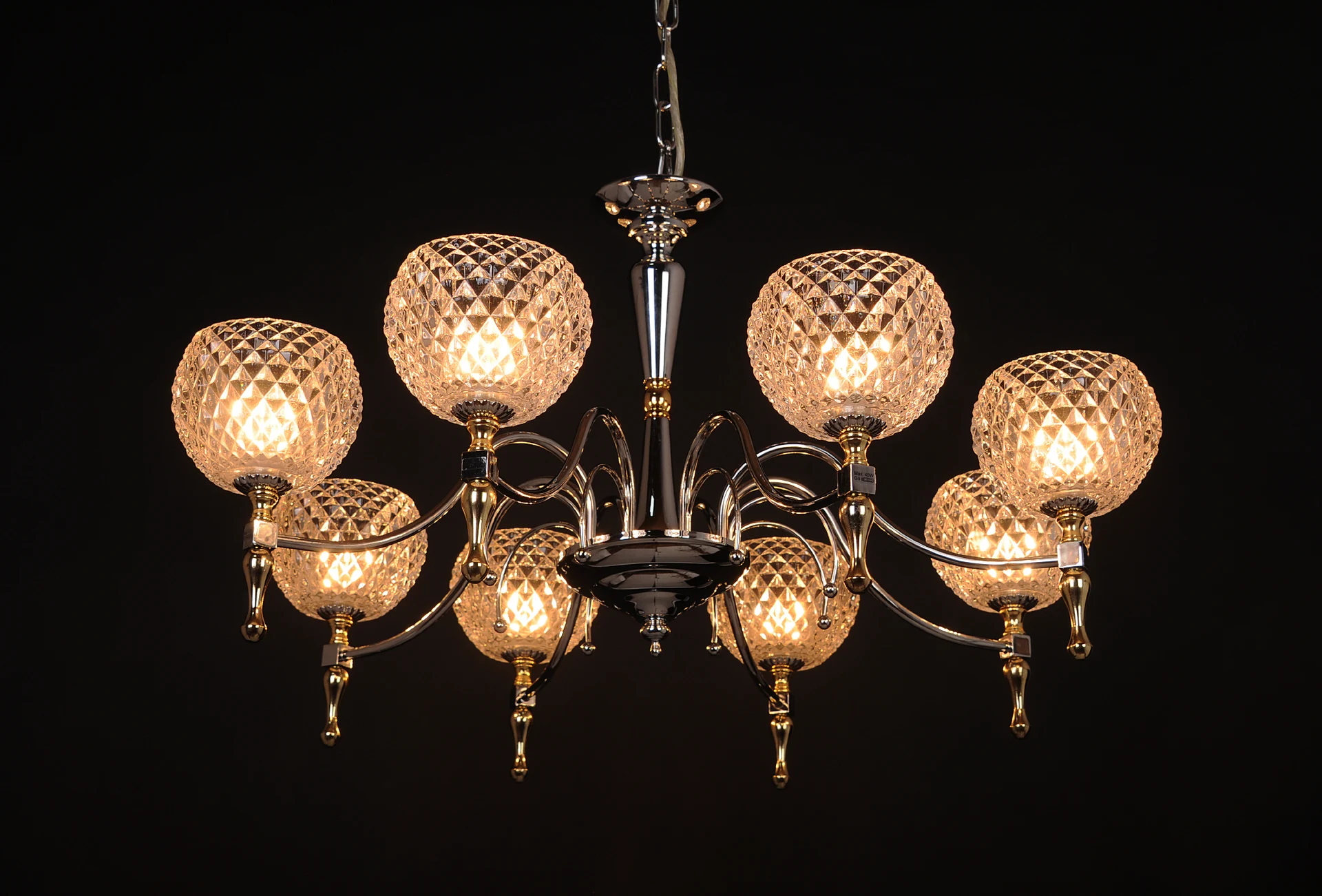 Подвесная люстра Abrasax 6565/8 от Abrasax, подходит для гостиной, для спальни, в стиле классика. Материал — металл, цвет хром, плафон из стекла, цвет плафона белый, форма плафона — шар. Модель имеет 8 ламп, цоколь G9, мощность 40 Вт. Крепление — крюк. Степень защиты IP20. Габариты: высота 400 мм, ширина 650 мм, диаметр 650 мм. Коллекция 6565.