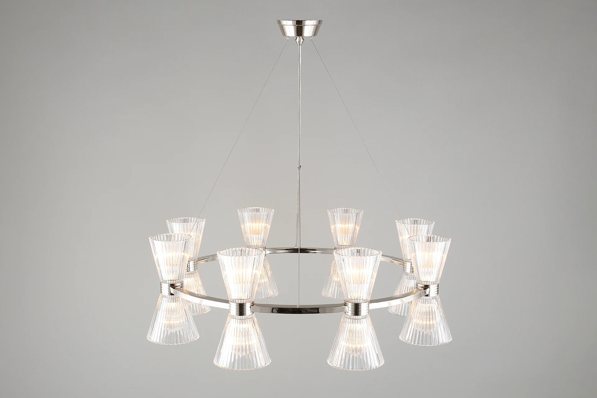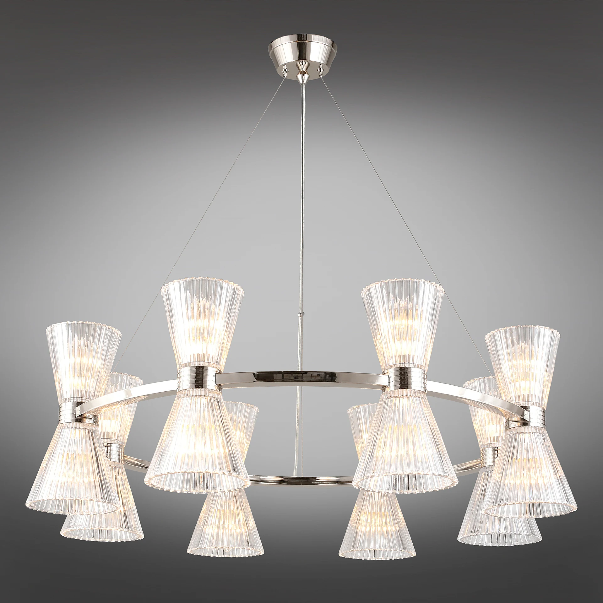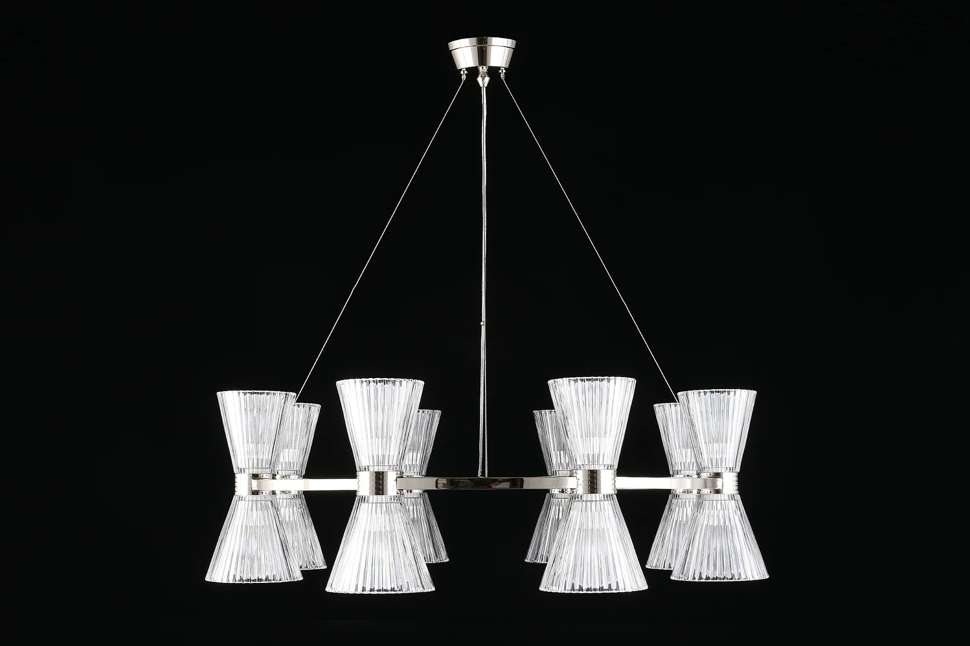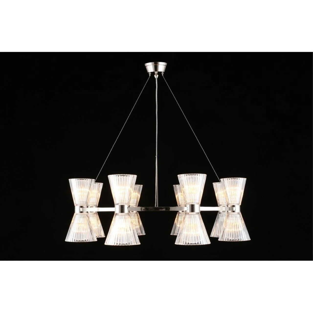 Подвесная люстра Aployt Elinor APL.801.13.16 от Aployt, подходит для гостиной, в стиле современный. Материал — металл, цвет хром, плафон из стекла, цвет плафона прозрачный, форма плафона — конус. Модель имеет 16 ламп, цоколь E14, мощность 640 Вт. Крепление — планка. Габариты: высота 1800 мм, ширина 850 мм, диаметр 850 мм. Коллекция Elinor.