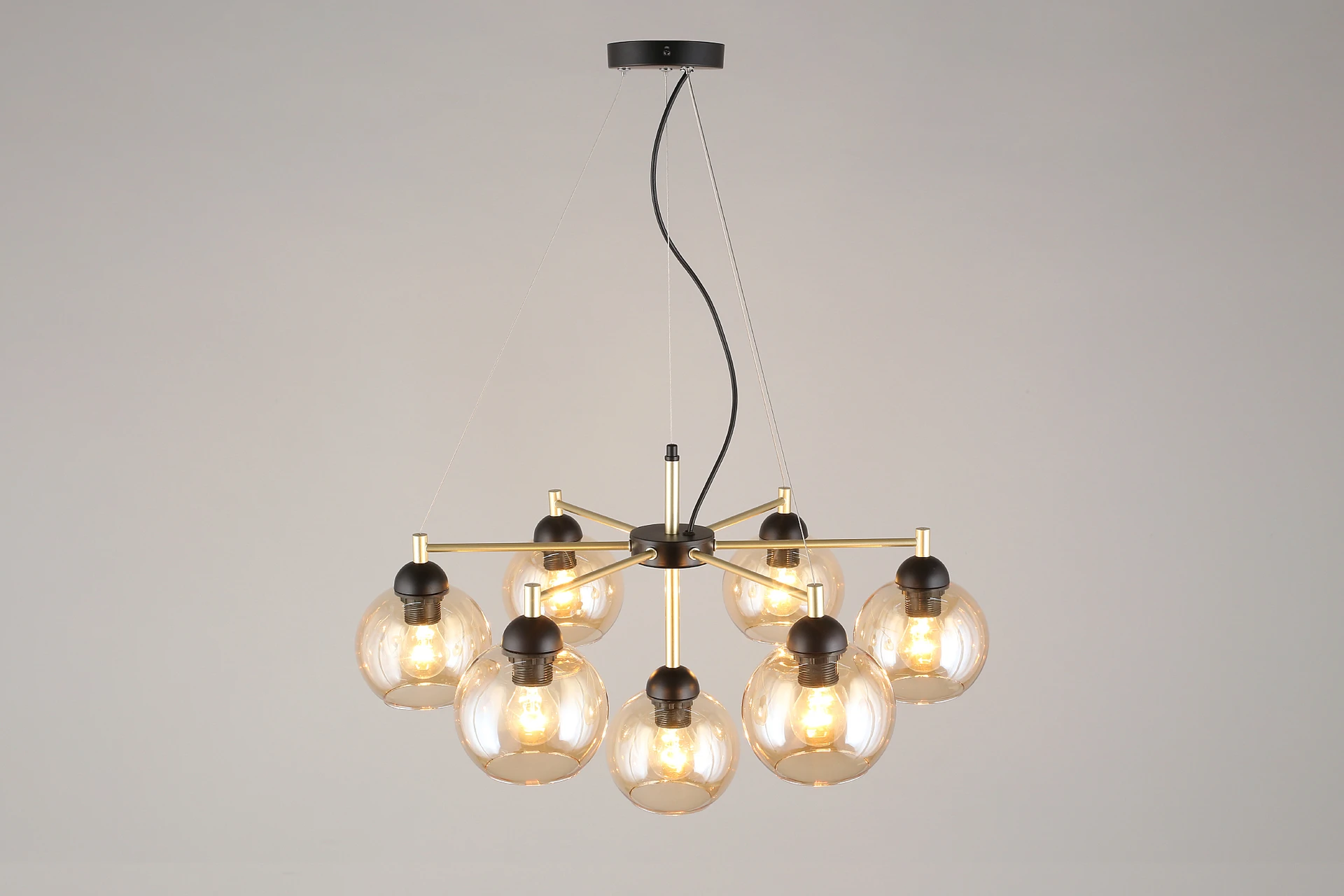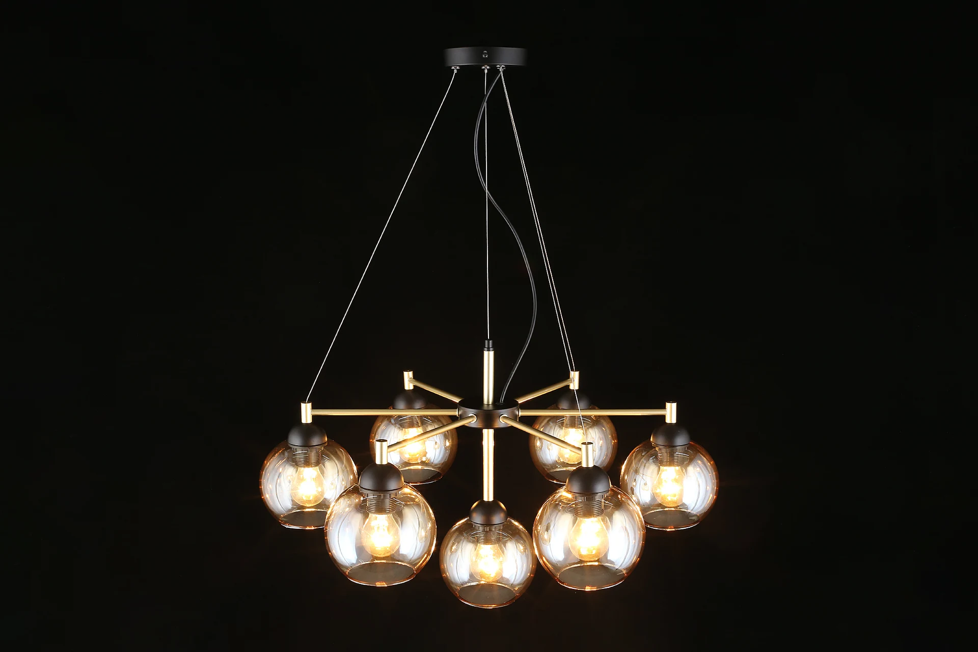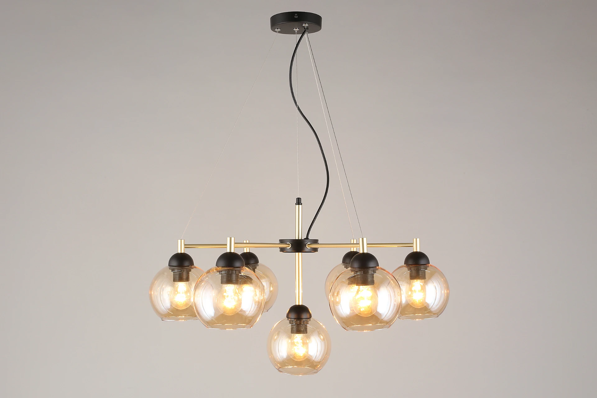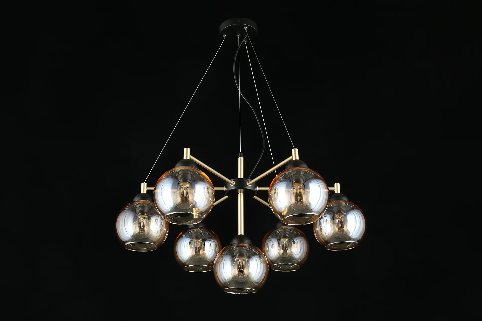 Подвесная люстра Aployt Eliza APL.907.03.07 от Aployt — люстры. Материал — металл, цвет черный, плафон из стекла, цвет плафона янтарный, форма плафона — шар. Модель имеет 7 ламп, цоколь E27, мощность 420 Вт. Крепление — планка. Габариты: высота 1300 мм, ширина 700 мм, диаметр 700 мм. Коллекция Eliza.