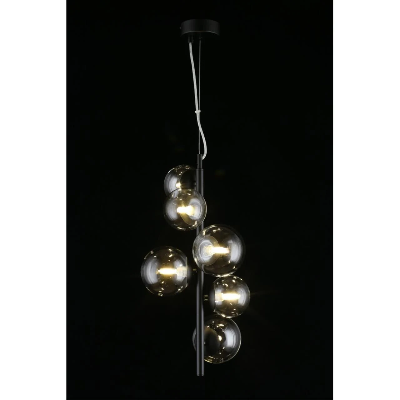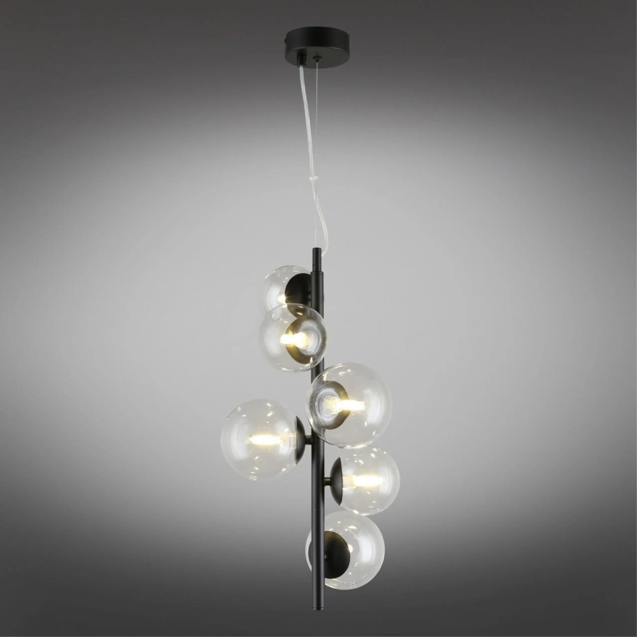 Подвесная люстра Aployt Feliche APL.334.06.06 от Aployt — люстры. Материал — металл, цвет черный, плафон из стекла, цвет плафона прозрачный, форма плафона — шар. Модель имеет 6 ламп, цоколь G9, мощность 30 Вт. Направление света — равномерное, крепление — планка. Габариты: высота 1720 мм, ширина 230 мм. Коллекция Feliche, световой поток — 1650.