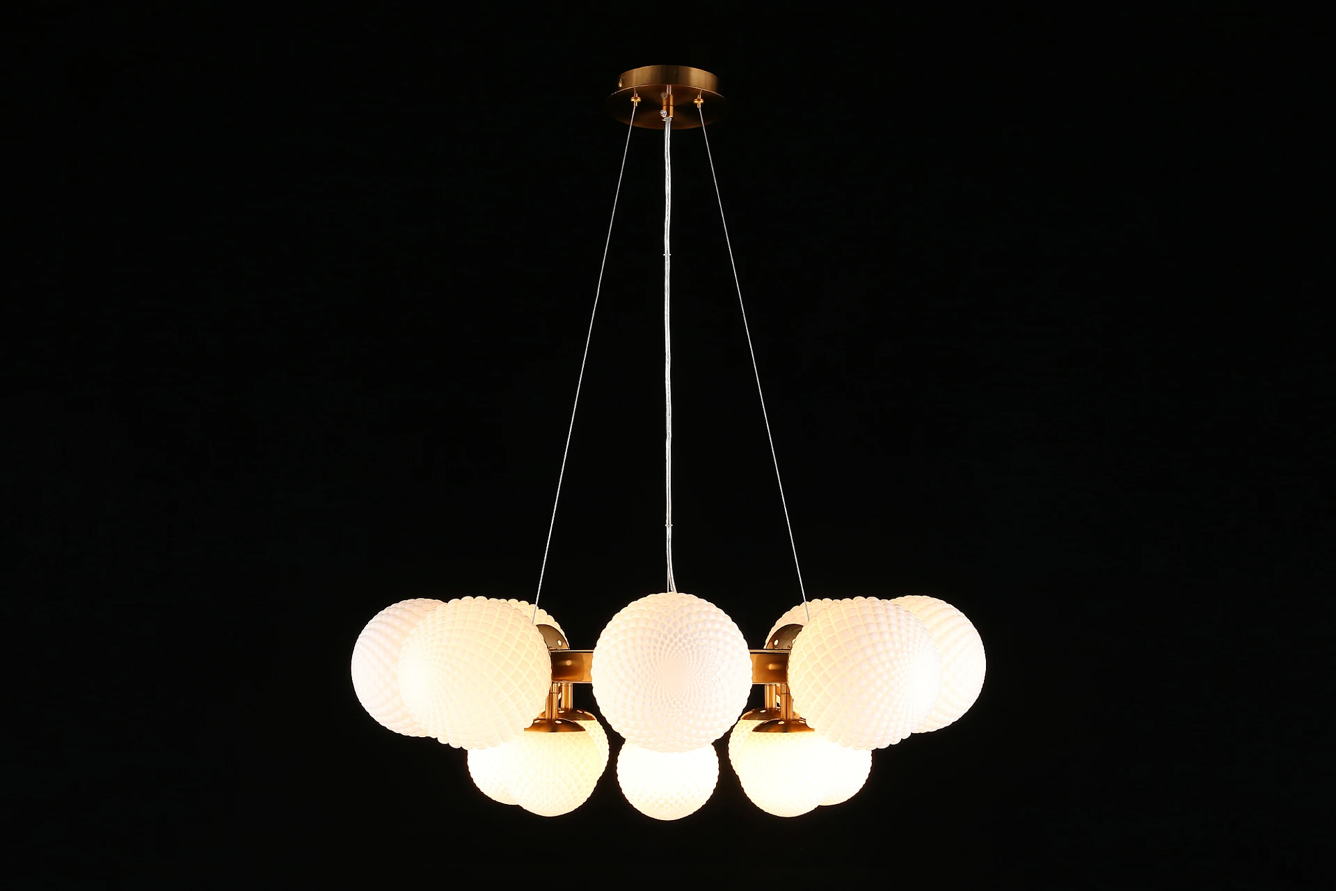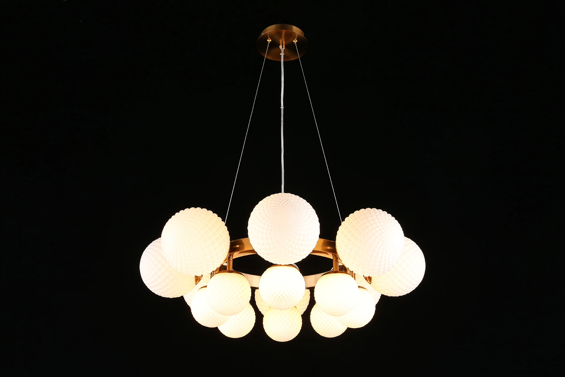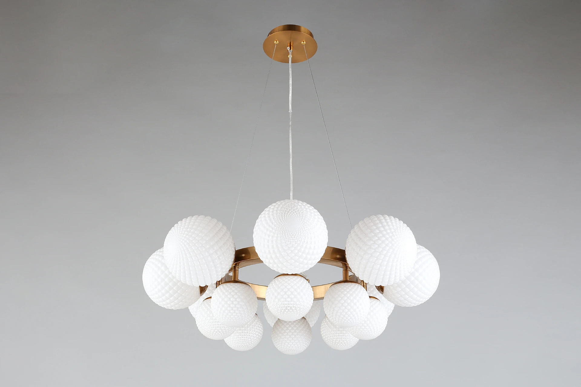 Подвесная люстра Aployt Filisi APL.765.03.16 от Aployt — люстры. Материал — металл, цвет бронза, плафон из стекла, цвет плафона белый матовый, форма плафона — шар. Модель имеет 16 ламп, цоколь G9, мощность 80 Вт. Крепление — планка. Габариты: высота 1400 мм, ширина 650 мм, диаметр 650 мм. Коллекция Filisi.