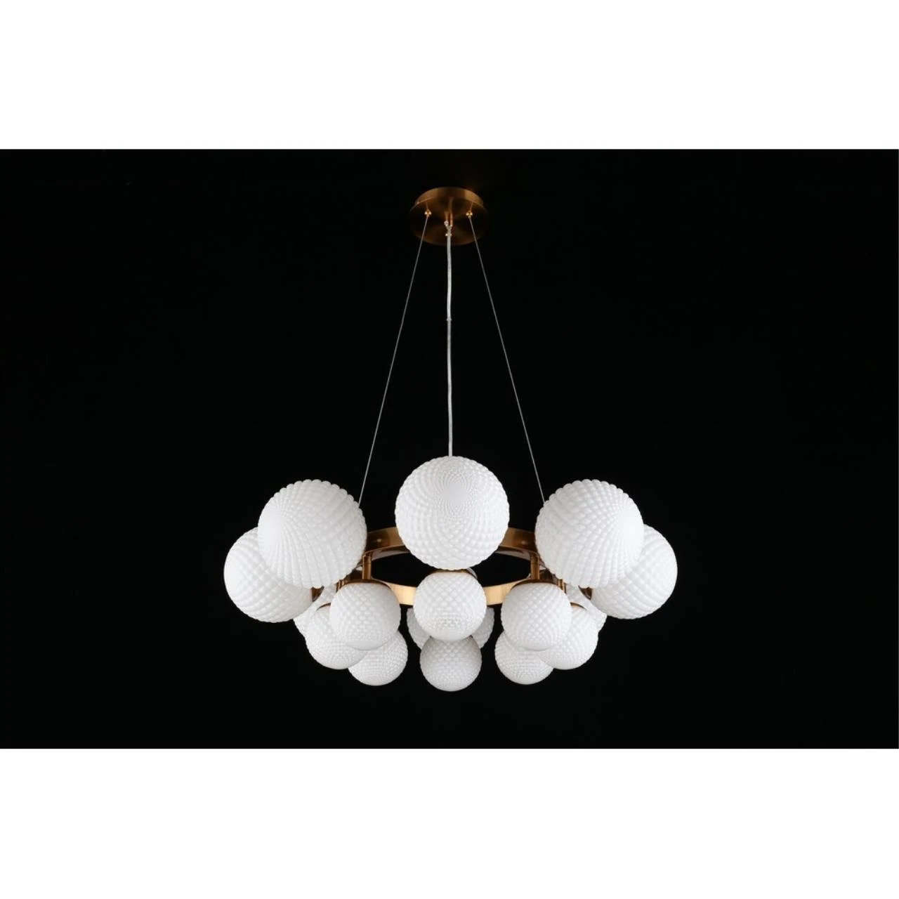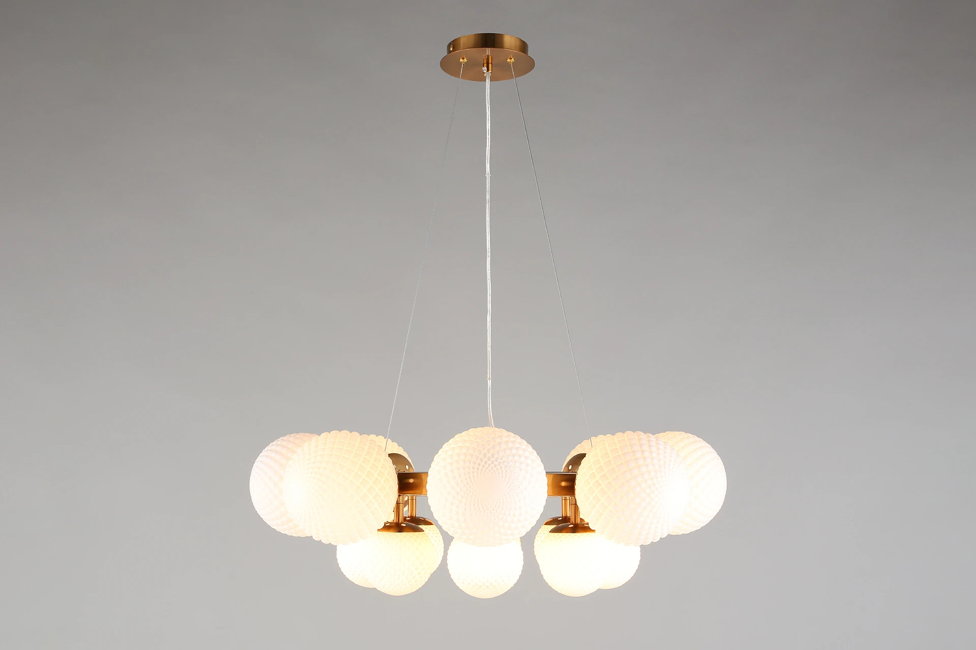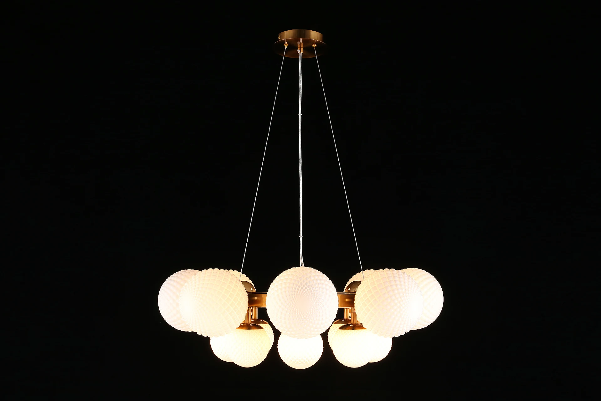 Подвесная люстра Aployt Filisi APL.765.03.16 от Aployt — люстры. Материал — металл, цвет бронза, плафон из стекла, цвет плафона белый матовый, форма плафона — шар. Модель имеет 16 ламп, цоколь G9, мощность 80 Вт. Крепление — планка. Габариты: высота 1400 мм, ширина 650 мм, диаметр 650 мм. Коллекция Filisi.