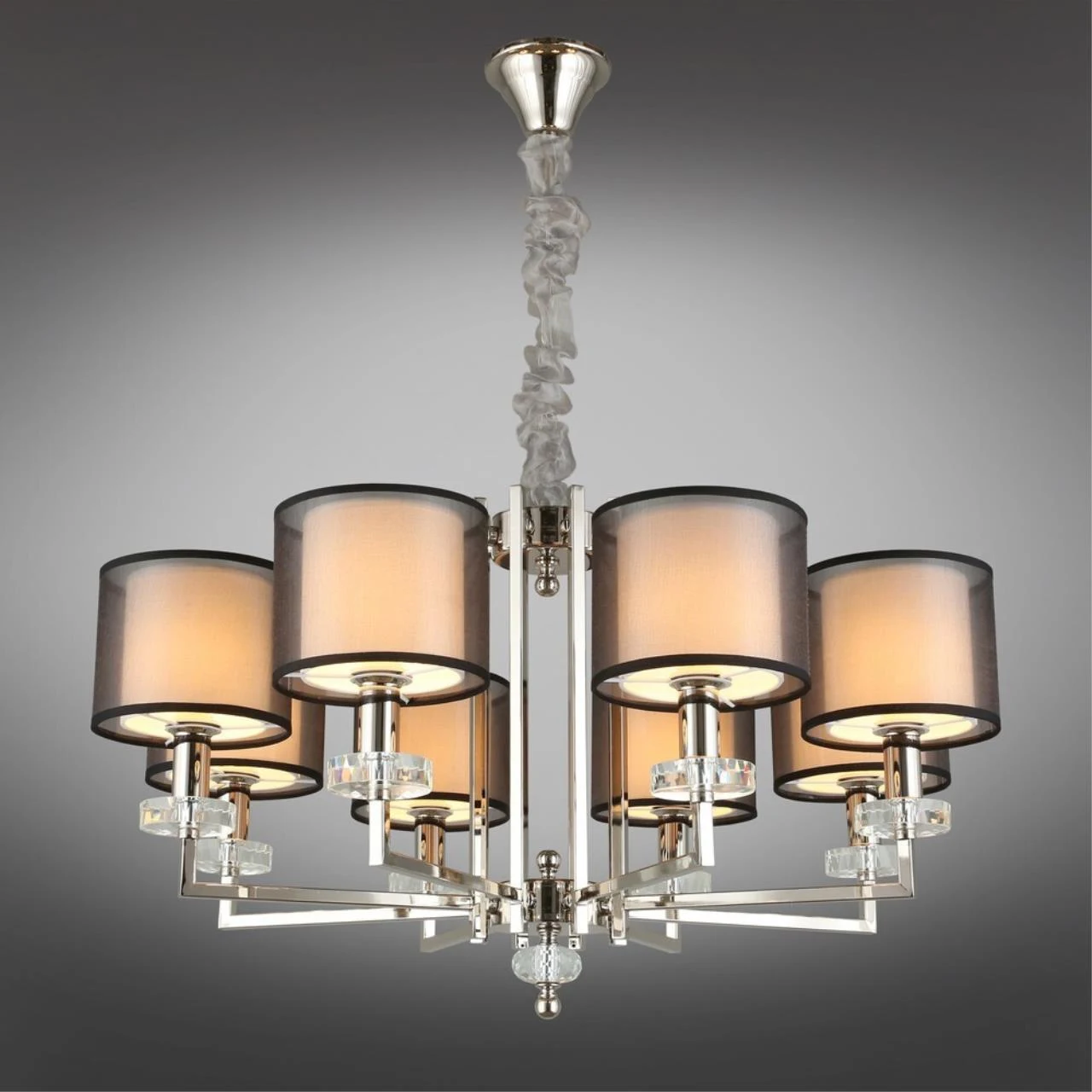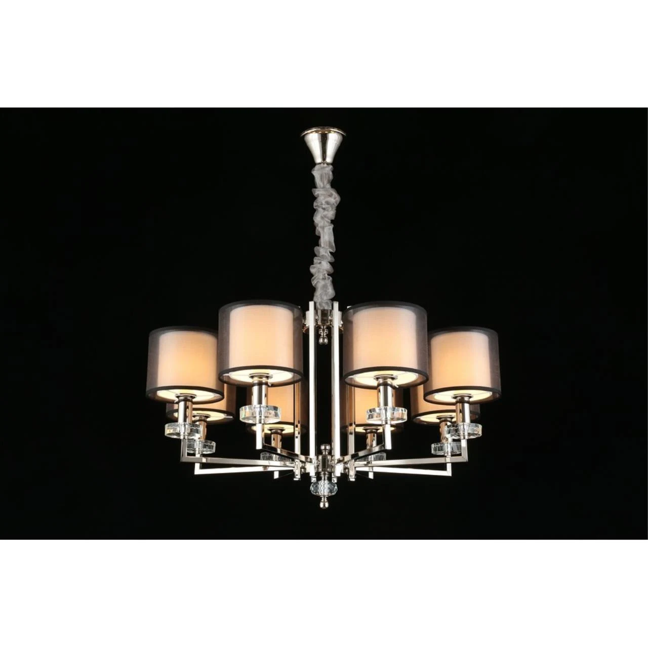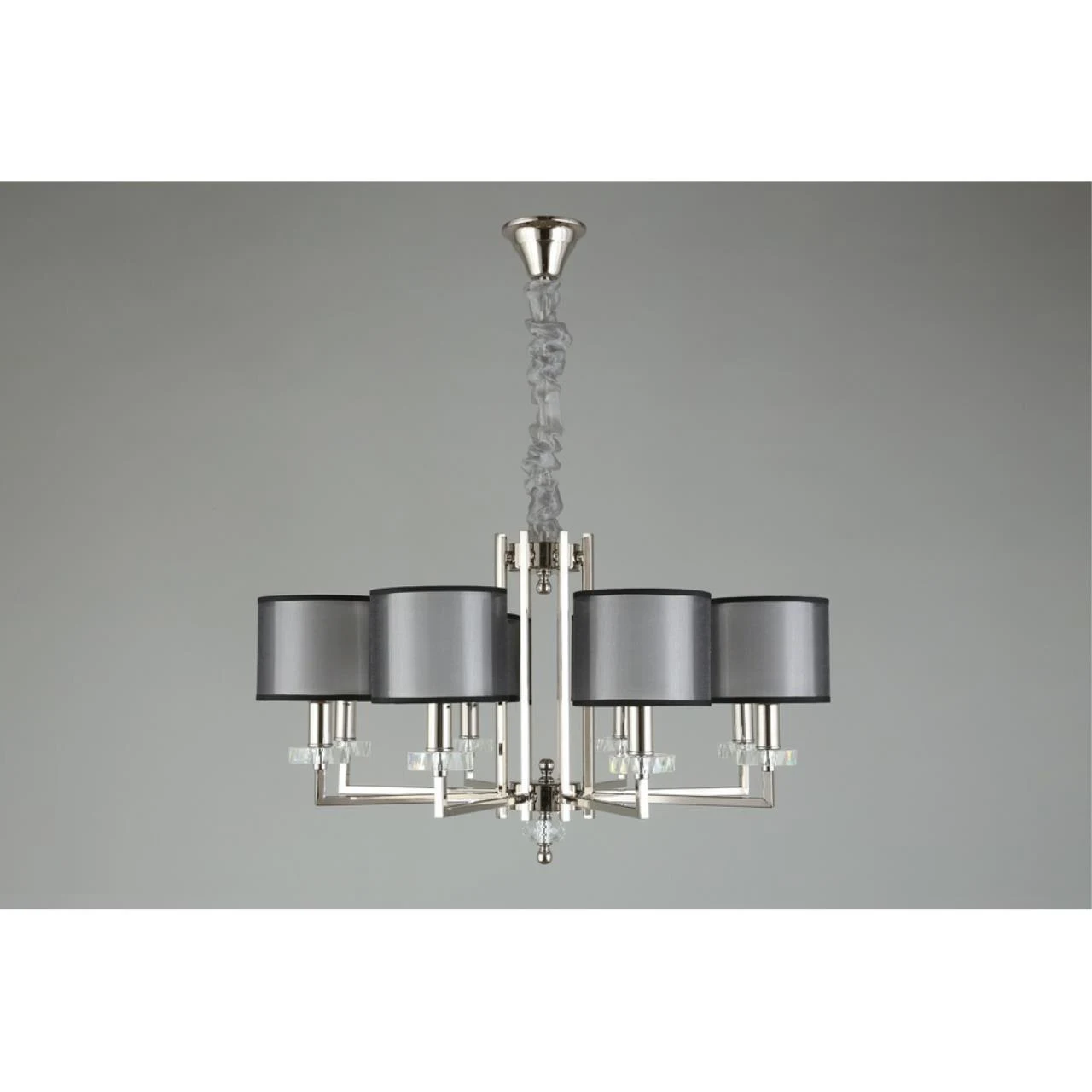 Подвесная люстра Aployt Flavi APL.753.03.08 от Aployt, подходит для гостиной, в стиле современный, арт-деко. Материал — металл, цвет хром, плафон из ткань, цвет плафона белый, форма плафона — цилиндр. Модель имеет 8 ламп, цоколь E14, мощность 40 Вт. Габариты: высота 1400 мм, ширина 780 мм, диаметр 780 мм.