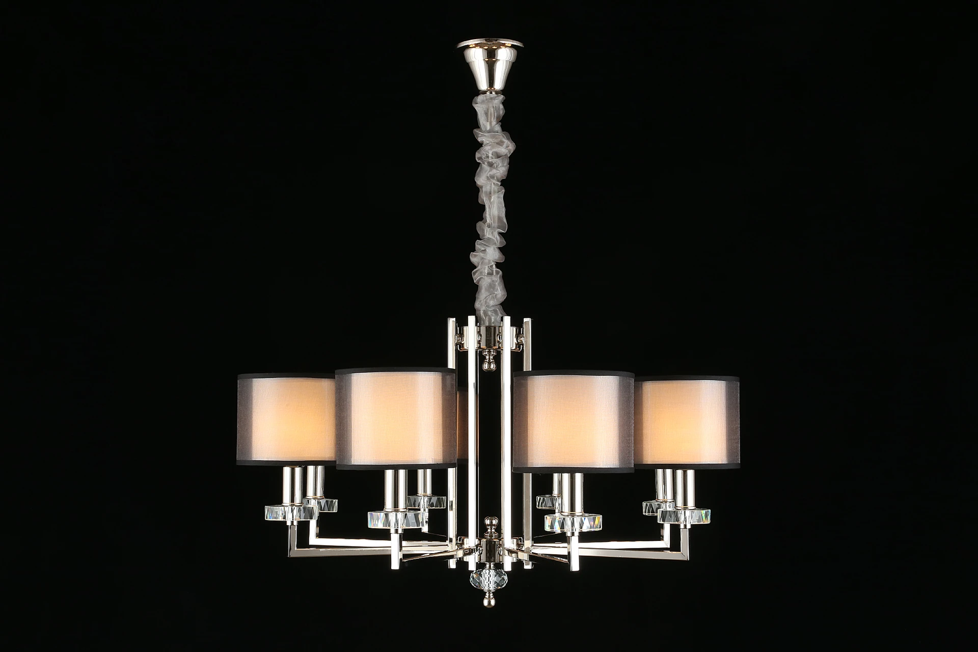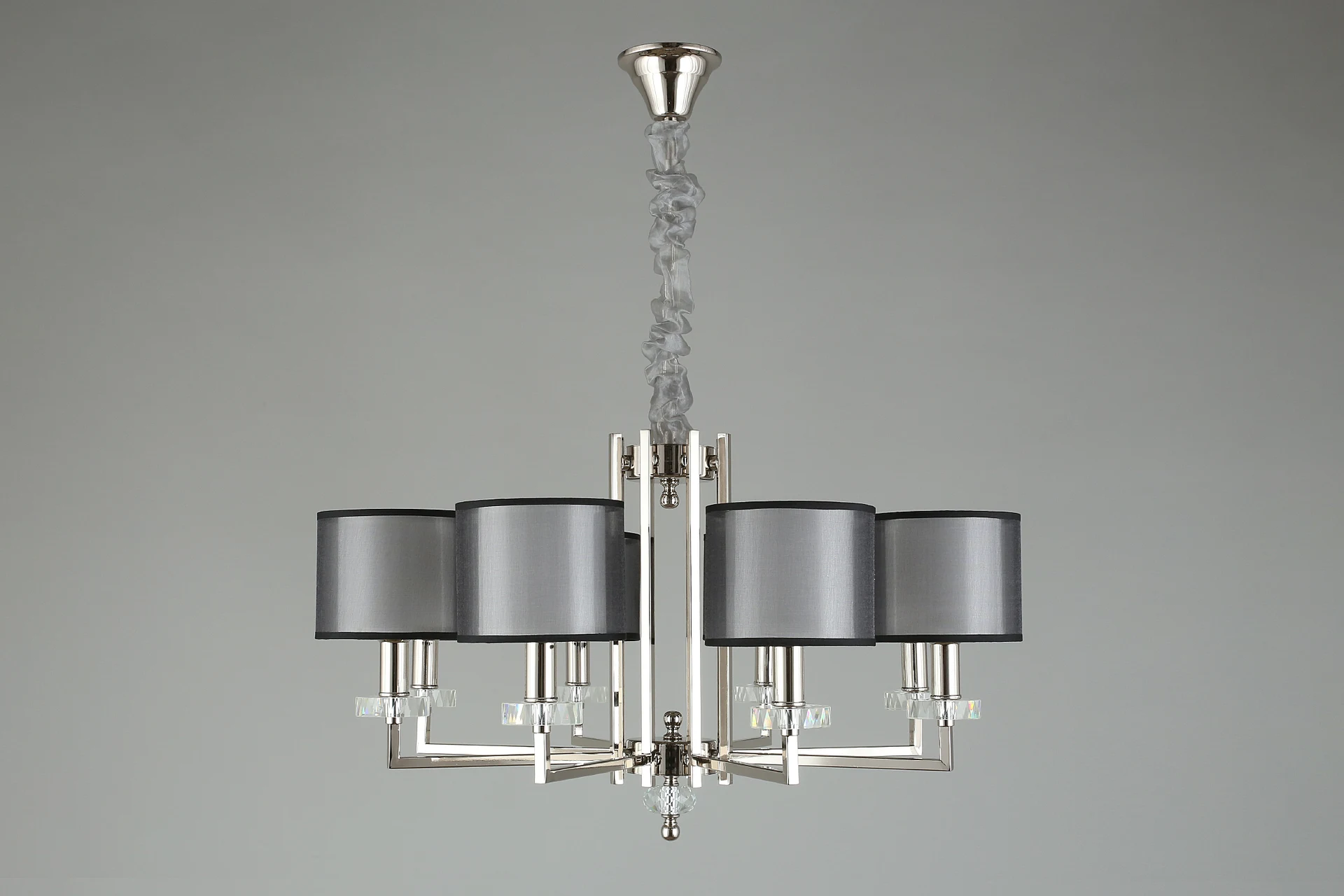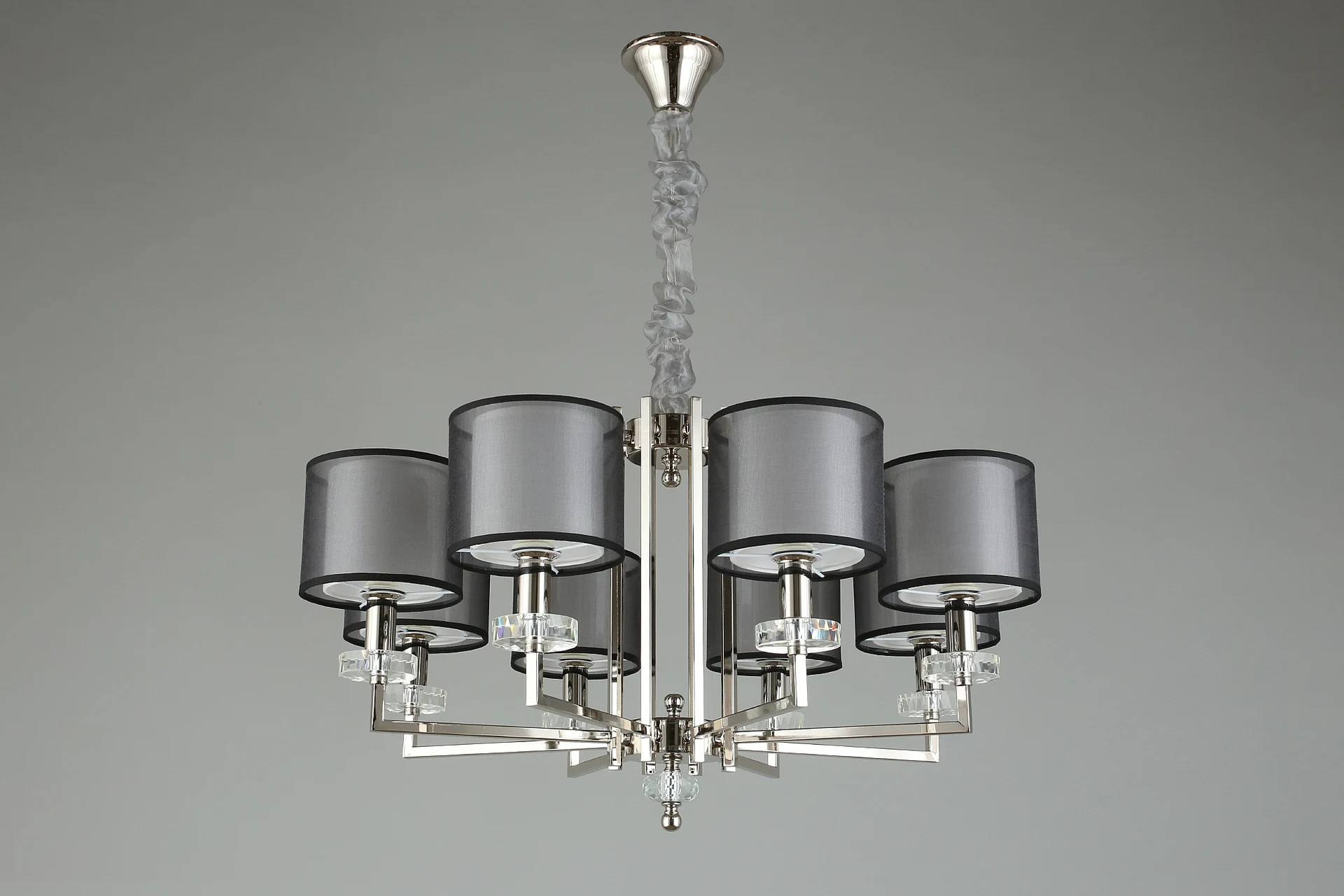 Подвесная люстра Aployt Flavi APL.753.03.08 от Aployt, подходит для гостиной, в стиле современный, арт-деко. Материал — металл, цвет хром, плафон из ткань, цвет плафона белый, форма плафона — цилиндр. Модель имеет 8 ламп, цоколь E14, мощность 40 Вт. Габариты: высота 1400 мм, ширина 780 мм, диаметр 780 мм.