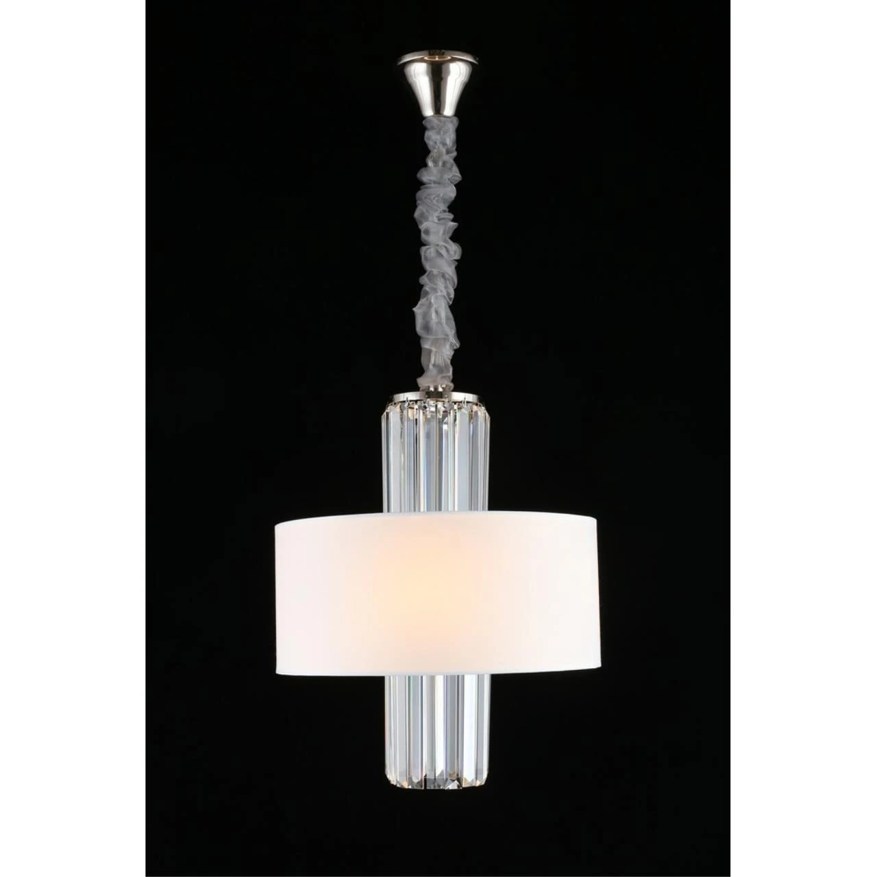 Подвесная люстра Aployt Karola APL.841.03.04 от Aployt — люстры. Материал — металл, цвет никель, плафон из ткань, цвет плафона белый, форма плафона — цилиндр. Модель имеет 4 лампы, цоколь E14, мощность 160 Вт. Габариты: высота 1300 мм, ширина 400 мм, диаметр 400 мм. Декор — хрустальные подвески.