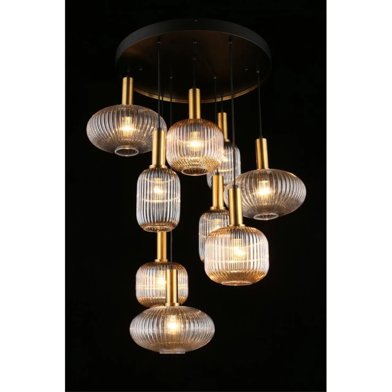 Подвесная люстра Aployt Kornelcia APL.311.03.09 от Aployt — люстры. Материал — металл, цвет черный, плафон из стекла, цвет плафона прозрачный+дымчатый+янтарный, форма плафона — разные формы. Модель имеет 9 ламп, цоколь E27, мощность 360 Вт. Крепление — планка. Габариты: высота 2300 мм, ширина 800 мм, диаметр 800 мм. Коллекция Kornelcia, световой поток — 3780.