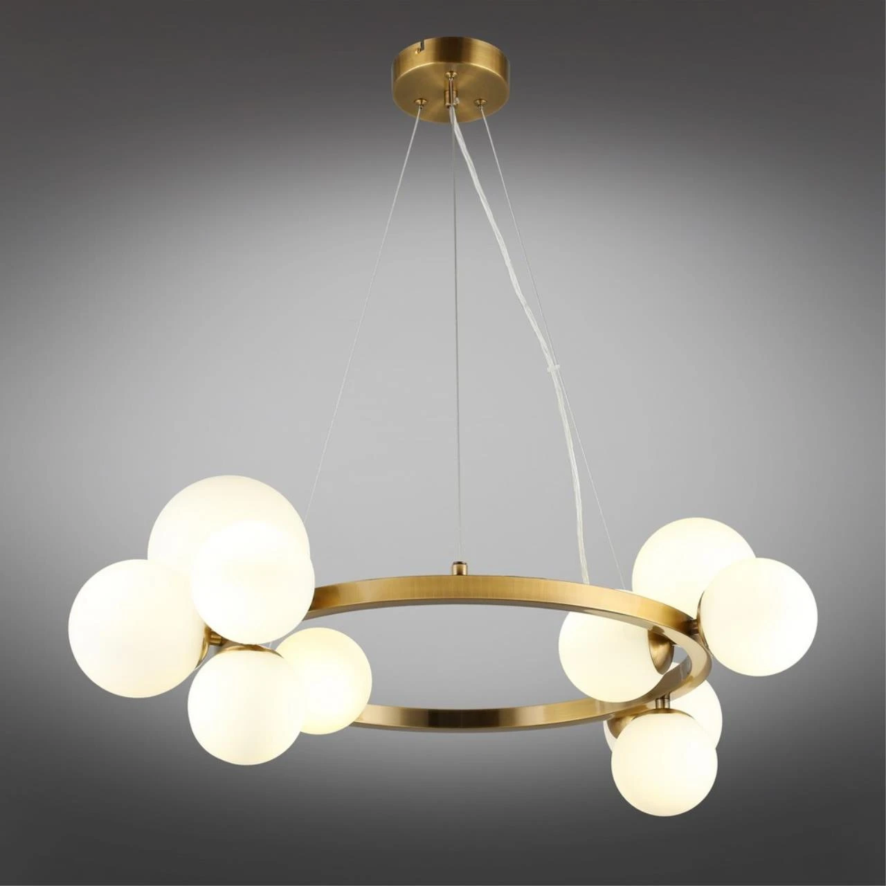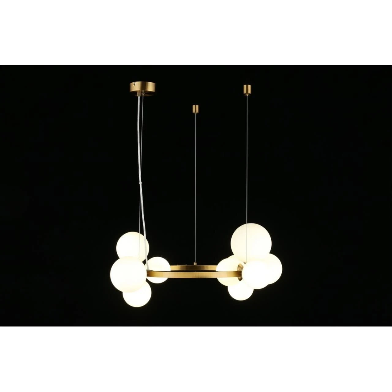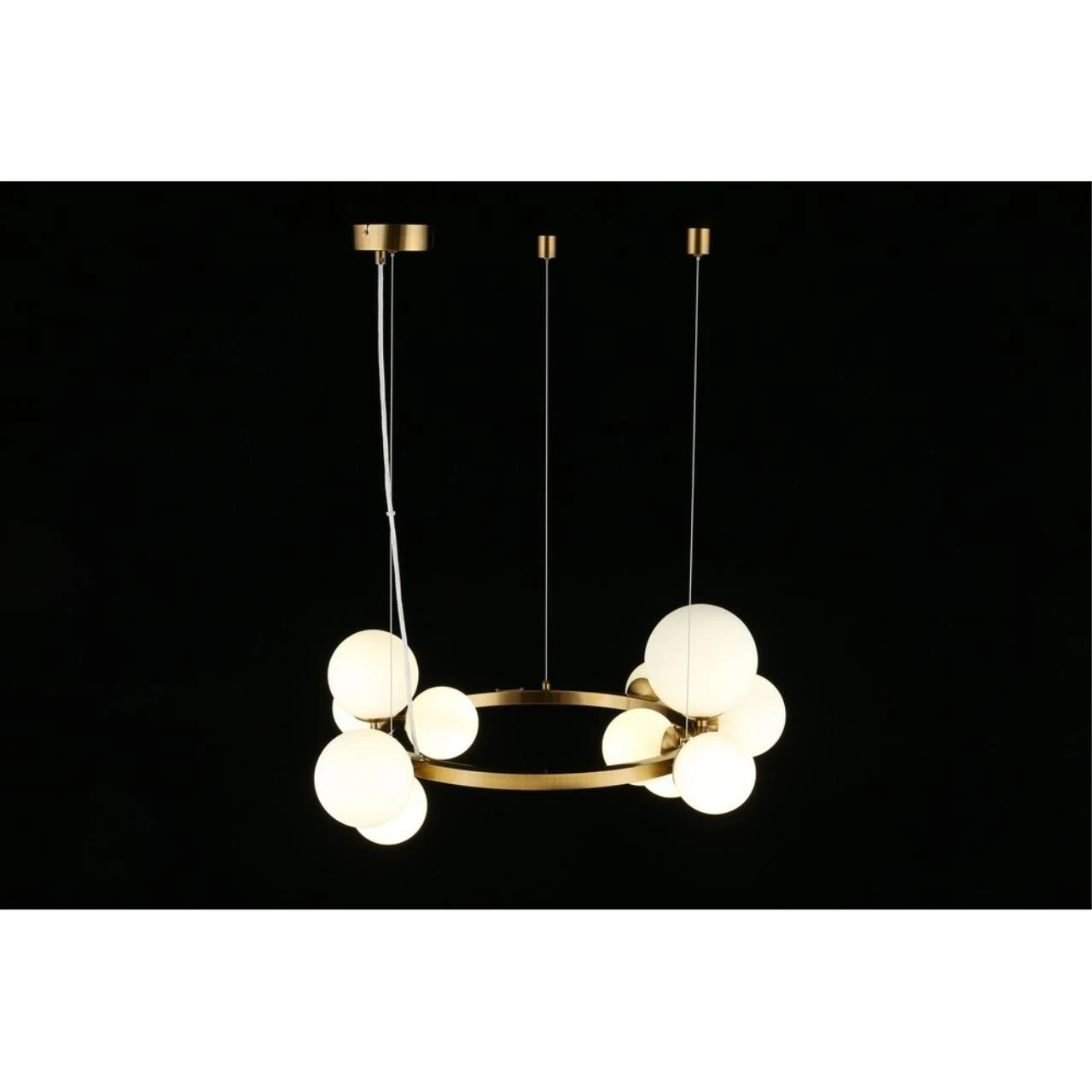 Подвесная люстра Aployt Letizia APL.314.03.11 от Aployt — люстры. Материал — металл, цвет латунь, плафон из стекла, цвет плафона белый, форма плафона — шар. Модель имеет 11 ламп, цоколь G9, мощность 55 Вт. Крепление — планка. Габариты: высота 1300 мм, ширина 700 мм, диаметр 700 мм. Коллекция Letizia, световой поток — 3025.