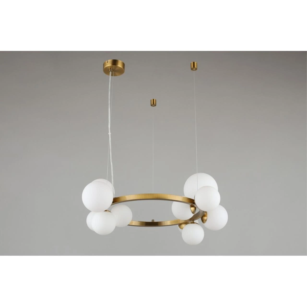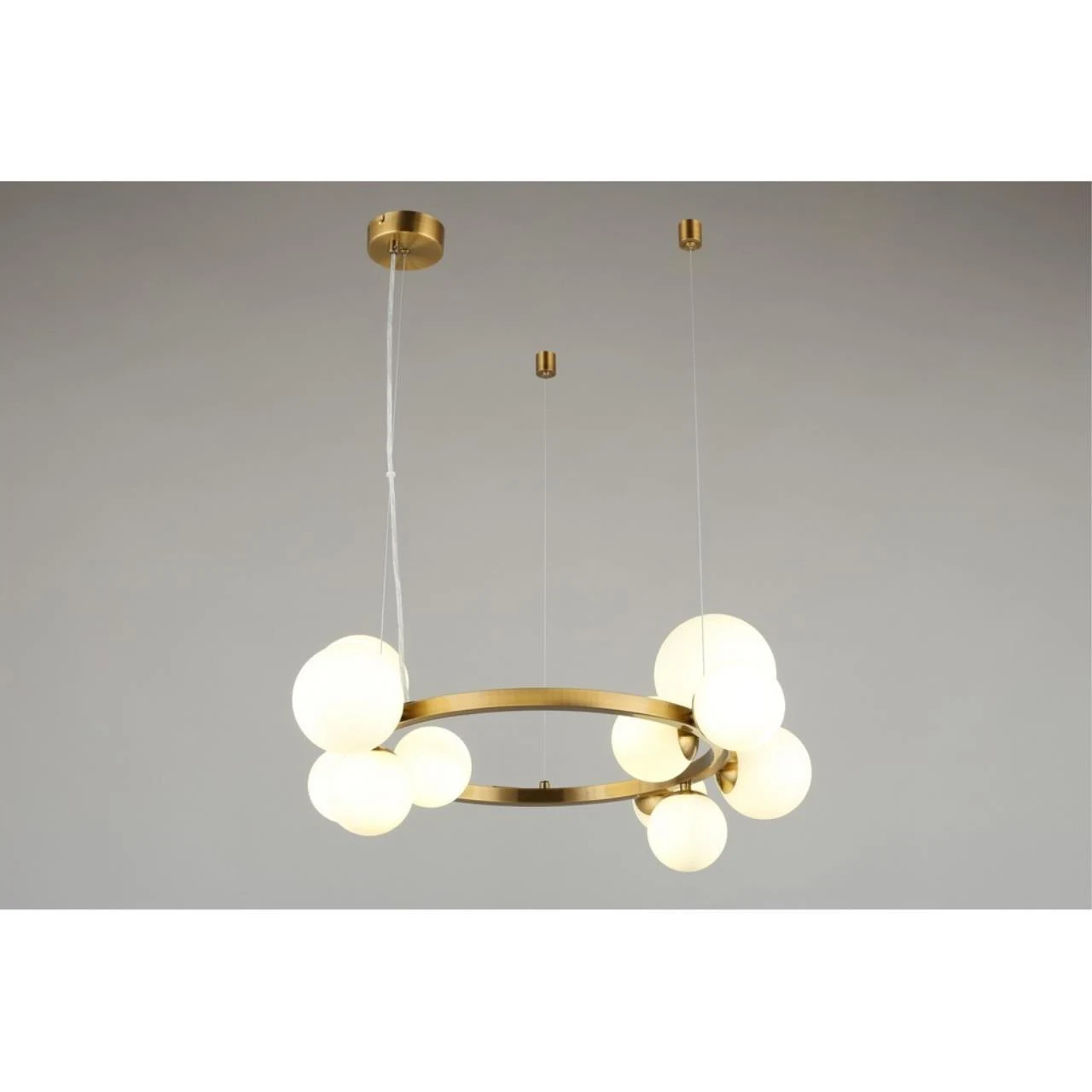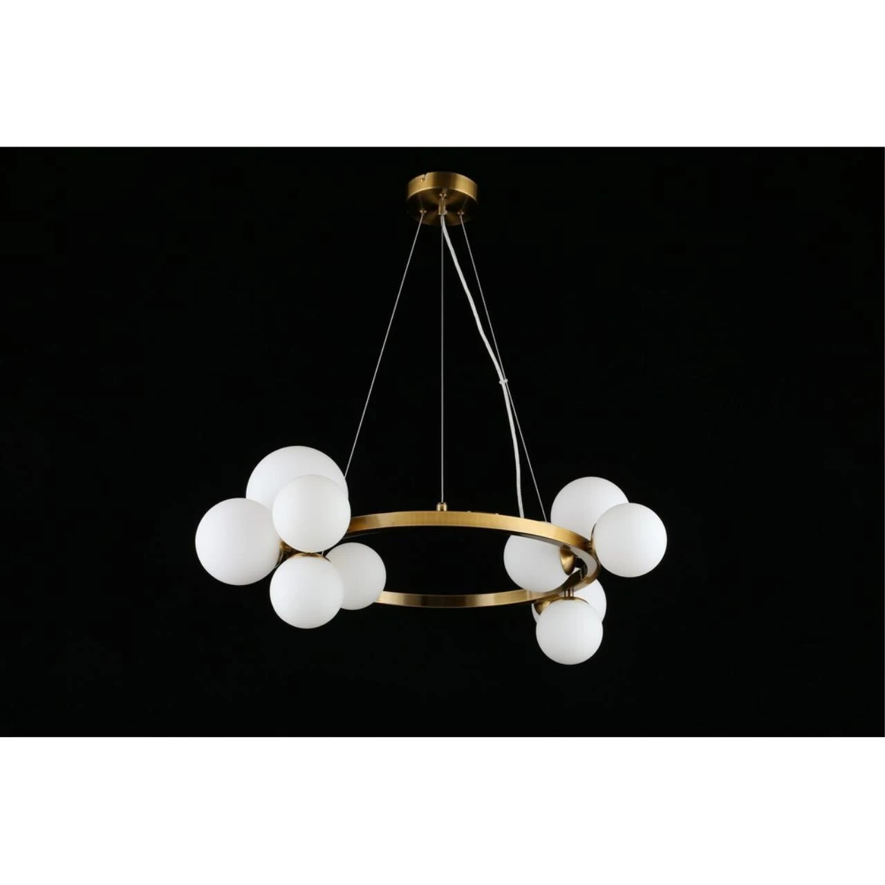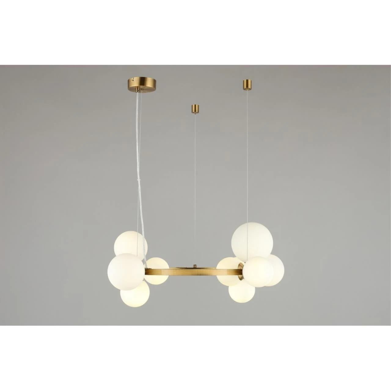 Подвесная люстра Aployt Letizia APL.314.03.11 от Aployt — люстры. Материал — металл, цвет латунь, плафон из стекла, цвет плафона белый, форма плафона — шар. Модель имеет 11 ламп, цоколь G9, мощность 55 Вт. Крепление — планка. Габариты: высота 1300 мм, ширина 700 мм, диаметр 700 мм. Коллекция Letizia, световой поток — 3025.