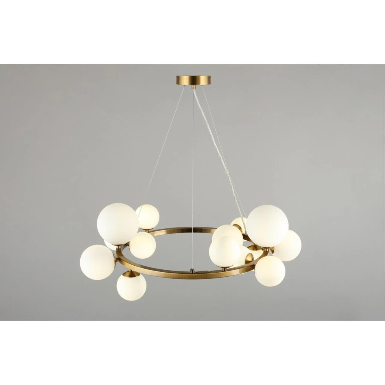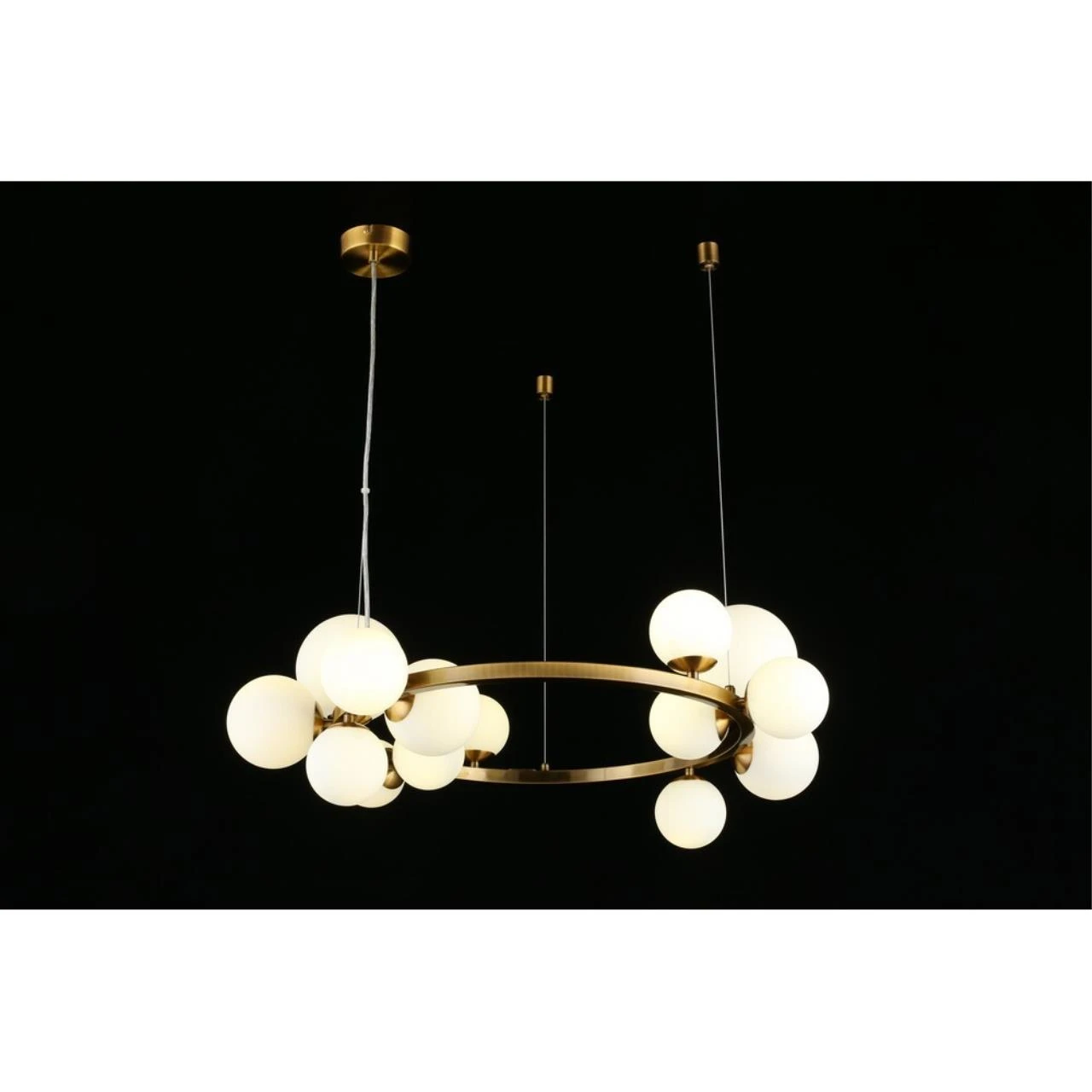 Подвесная люстра Aployt Letizia APL.314.03.14 от Aployt — люстры. Материал — металл, цвет латунь, плафон из стекла, цвет плафона белый, форма плафона — шар. Модель имеет 14 ламп, цоколь G9, мощность 70 Вт. Крепление — планка. Габариты: высота 1300 мм, ширина 800 мм, диаметр 800 мм. Коллекция Letizia, световой поток — 3850.