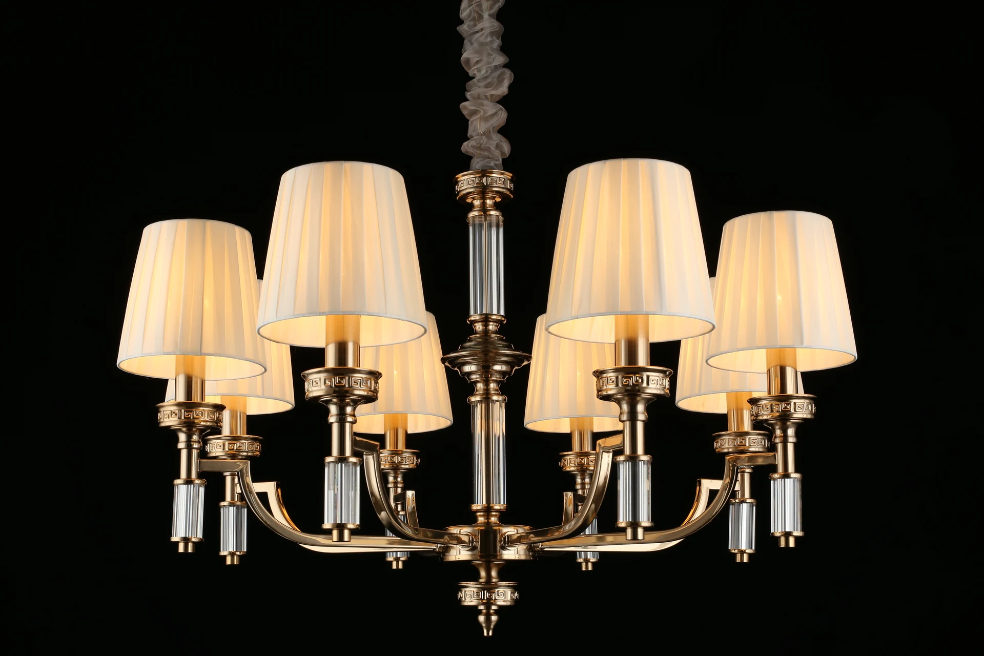 Подвесная люстра Aployt Patricia APL.716.13.08 от Aployt, подходит для гостиной, в стиле арт-деко. Материал — металл, цвет бронза, плафон из ткань, цвет плафона молочный, форма плафона — круглый абажур. Модель имеет 8 ламп, цоколь E14, мощность 320 Вт. Габариты: высота 1450 мм, ширина 800 мм, диаметр 800 мм. Коллекция Patricia.