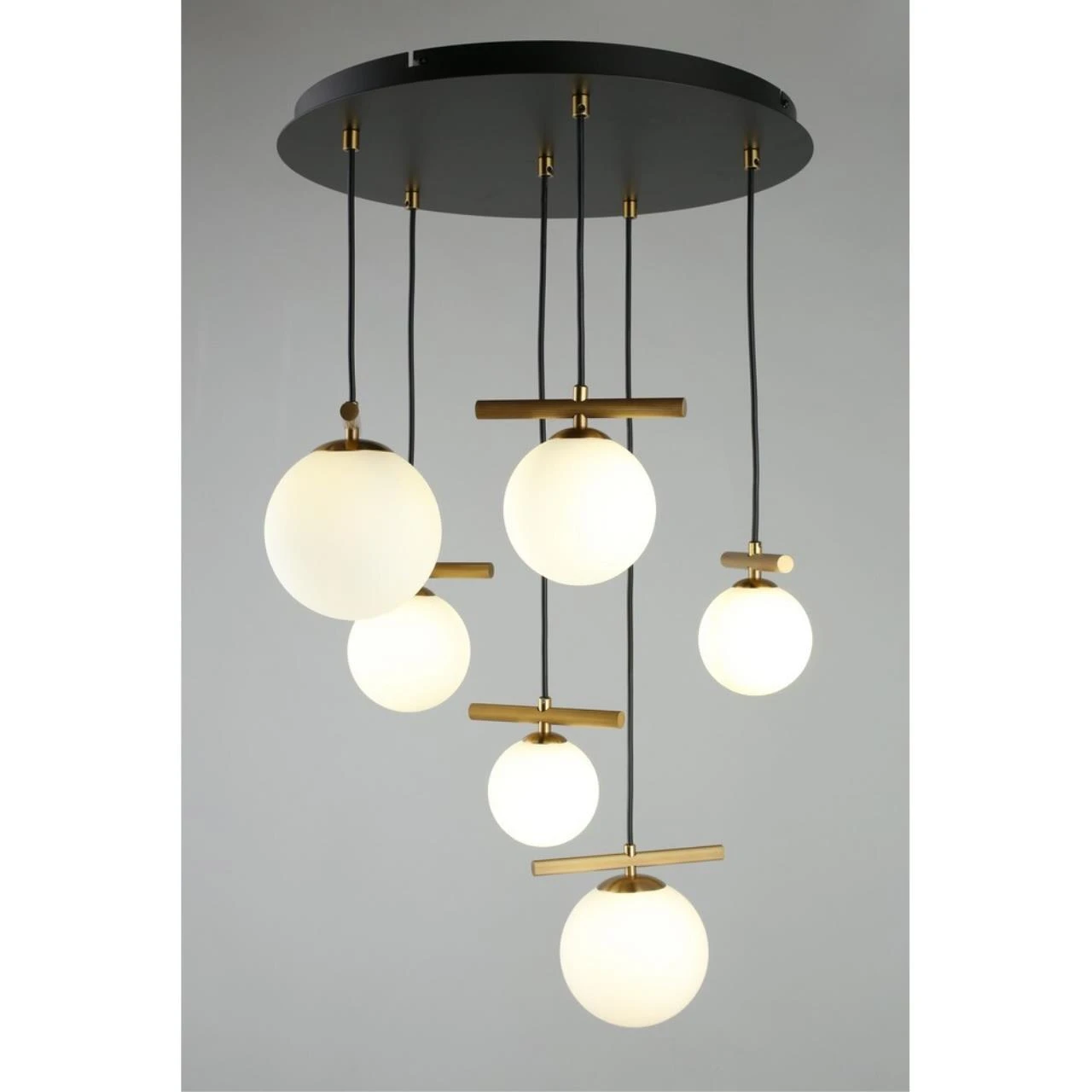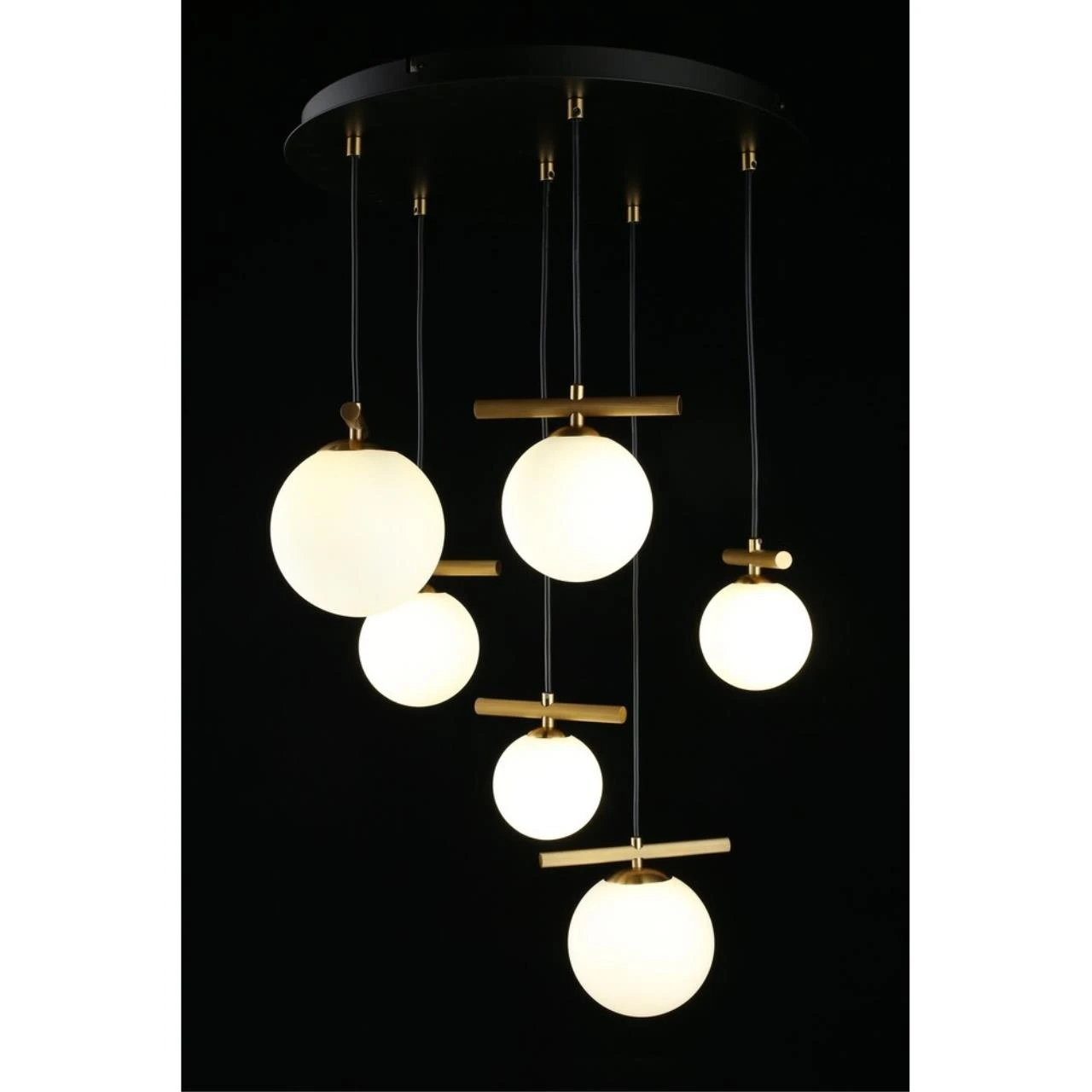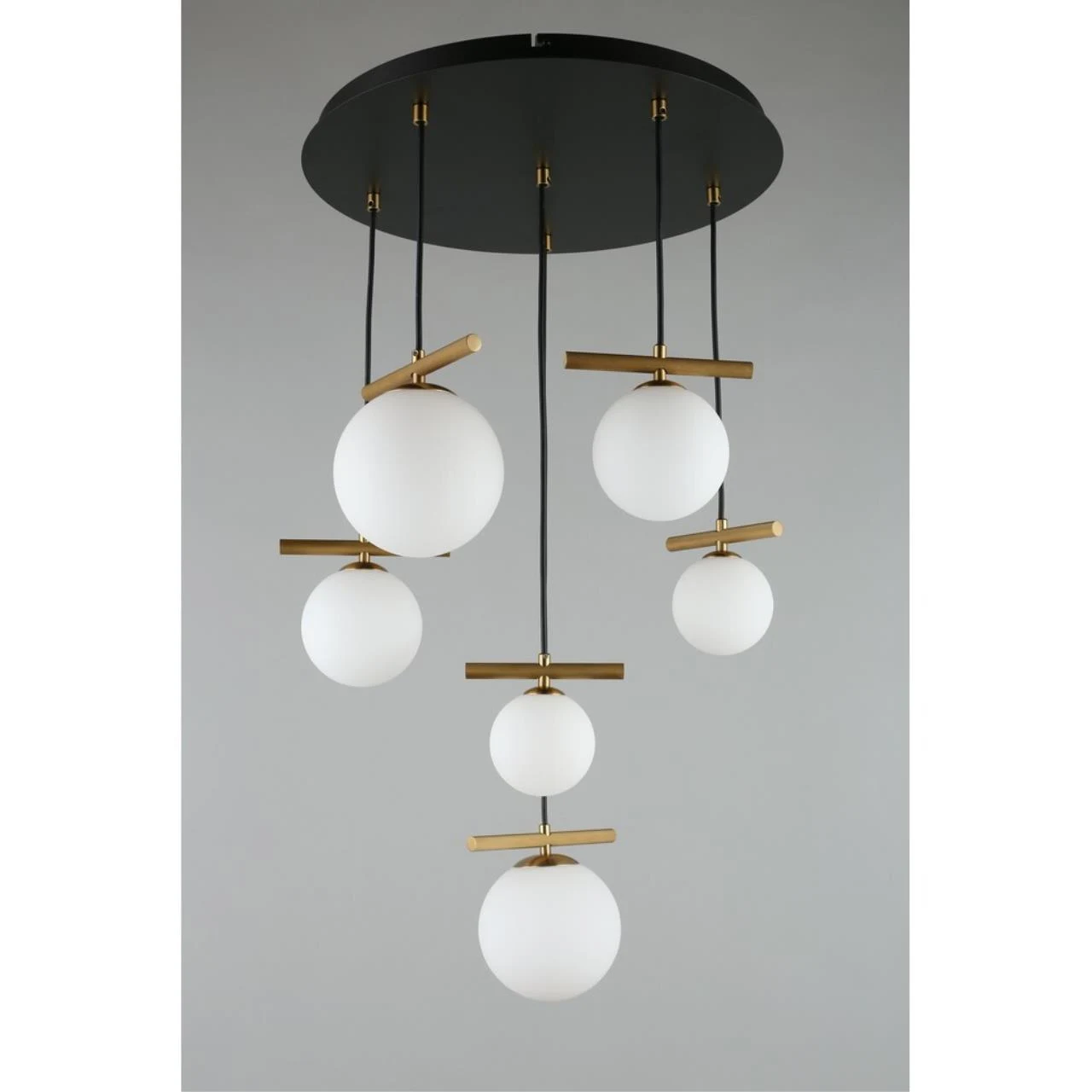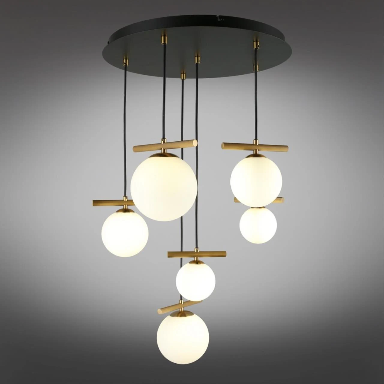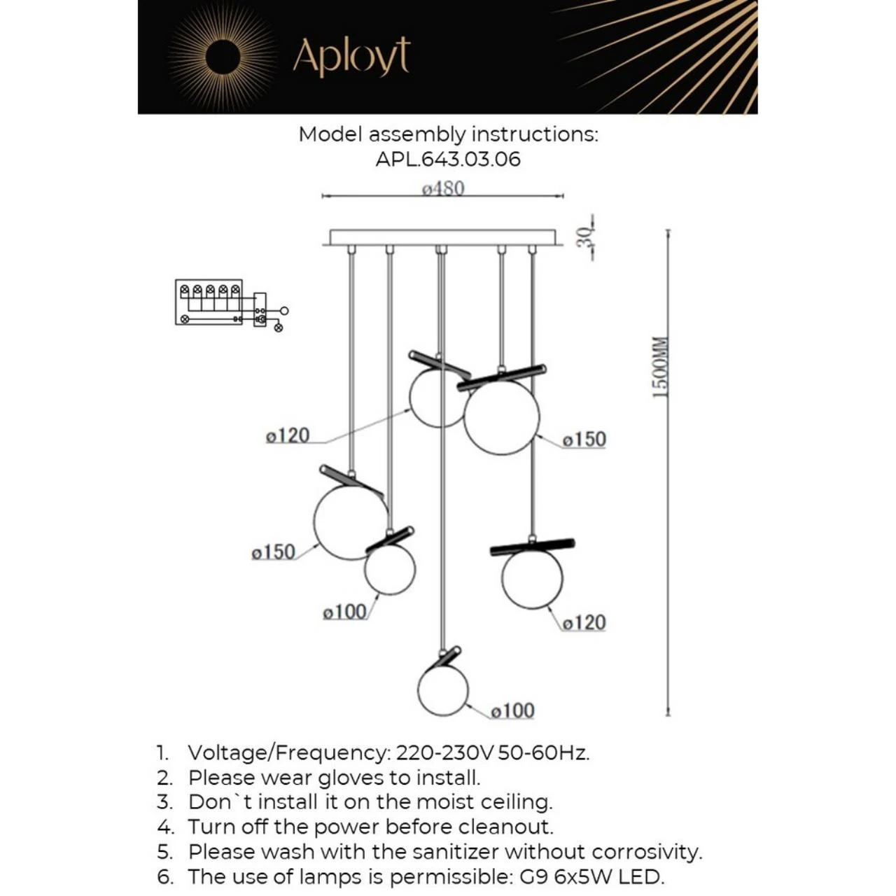 Подвесная люстра Aployt Penelopa APL.643.03.06 от Aployt — люстры. Материал — металл, цвет черный, плафон из стекла, цвет плафона белый, форма плафона — шар. Модель имеет 6 ламп, цоколь G9, мощность 30 Вт. Крепление — планка. Габариты: высота 1300 мм, ширина 500 мм, диаметр 500 мм. Коллекция Penelopa, световой поток — 1650.