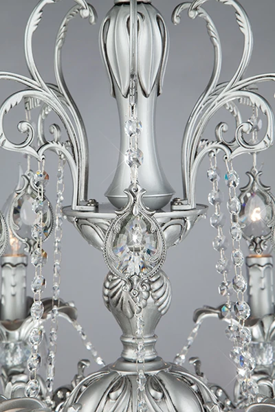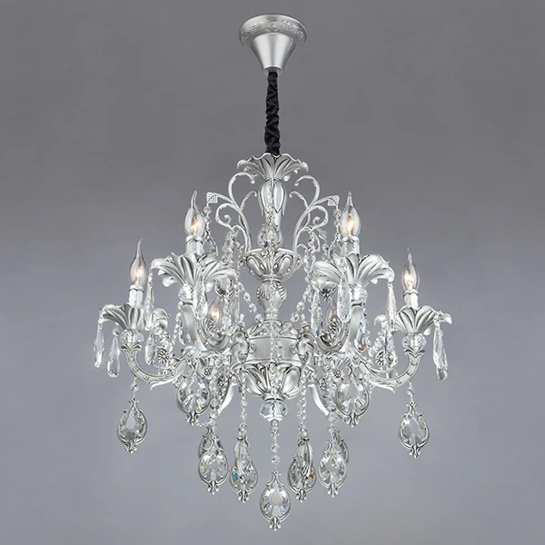 Подвесная люстра Bogates Wonderful 276/6 Strotskis от Bogates, подходит для гостиной, в стиле классика. Материал — металл, цвет серебро, форма плафона — свечи. Модель имеет 6 ламп, цоколь E14, мощность 40 Вт. Направление света — вверх. Габариты: высота 1250 мм, ширина 650 мм. Декор — хрустальные подвески, коллекция Wonderful.