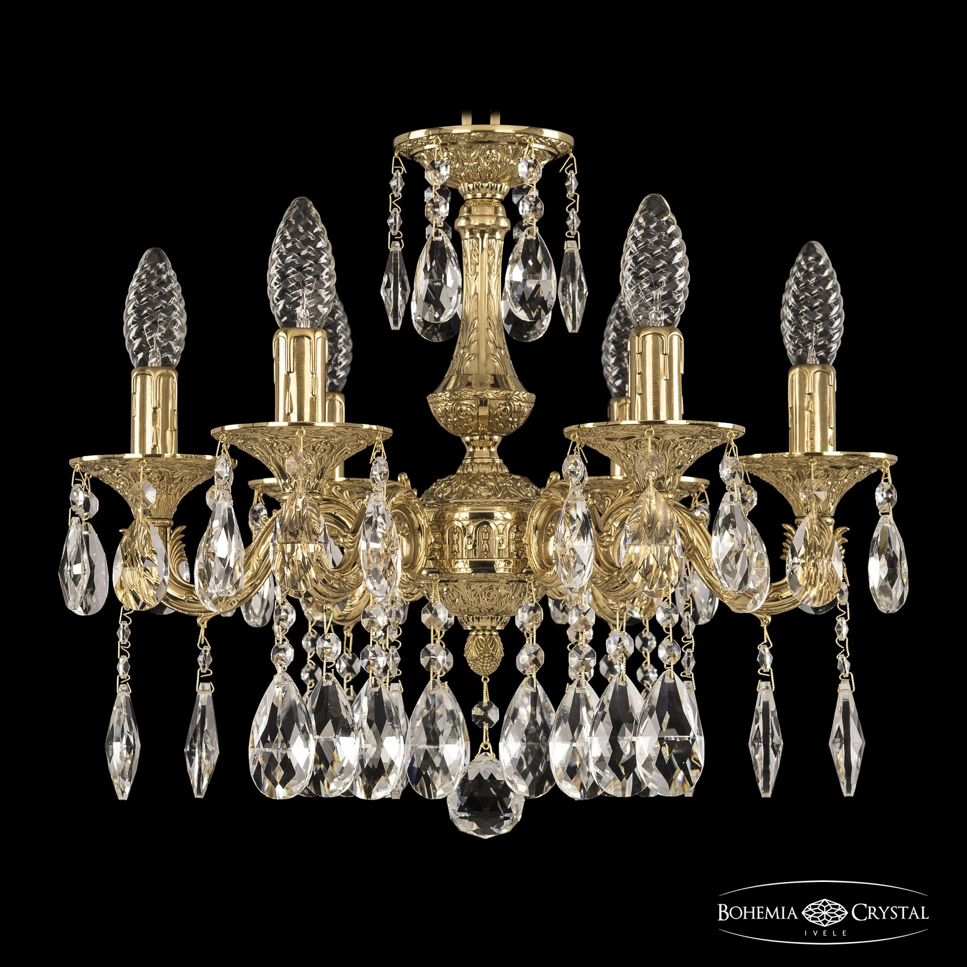 Подвесная хрустальная люстра 7101 Bohemia 71101/6/125 A G от Bohemia Ivele, подходит для гостиной, в стиле классика. Материал — латунь, цвет золото, форма плафона — свечи. Модель имеет 6 ламп, цоколь E14, мощность 40 Вт. Направление света — вверх. Габариты: высота 380 мм, ширина 440 мм, диаметр 440 мм. Коллекция 7101.
