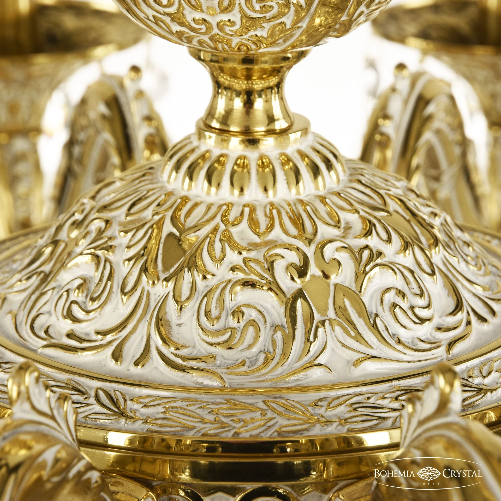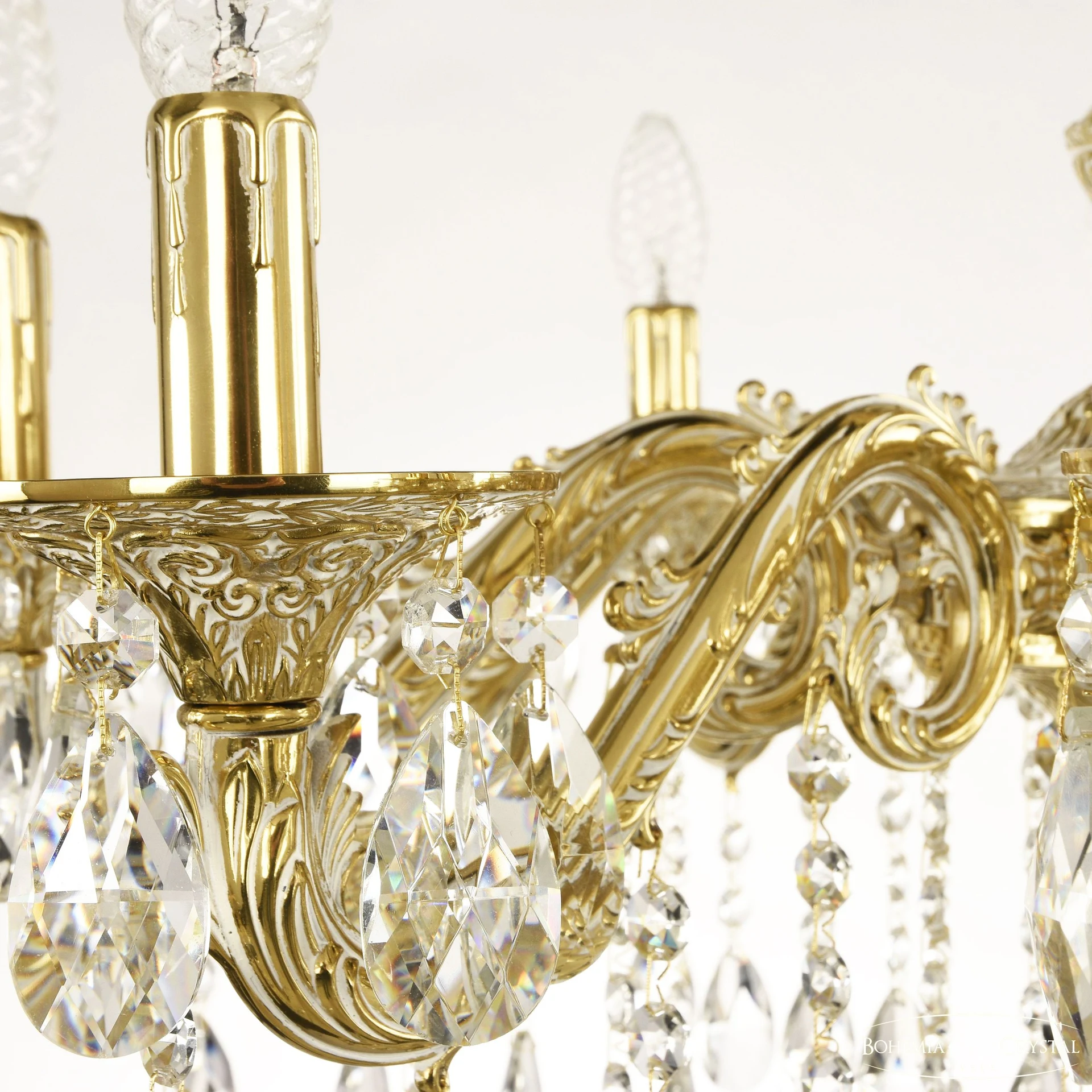 Подвесная хрустальная люстра 7102 Bohemia 71102/10/210 B GW от Bohemia Ivele, подходит для гостиной, в стиле классика. Материал — латунь, цвет золото, форма плафона — свечи. Модель имеет 10 ламп, цоколь E14, мощность 40 Вт. Направление света — вверх. Габариты: высота 610 мм, ширина 680 мм, диаметр 680 мм. Коллекция 7102.