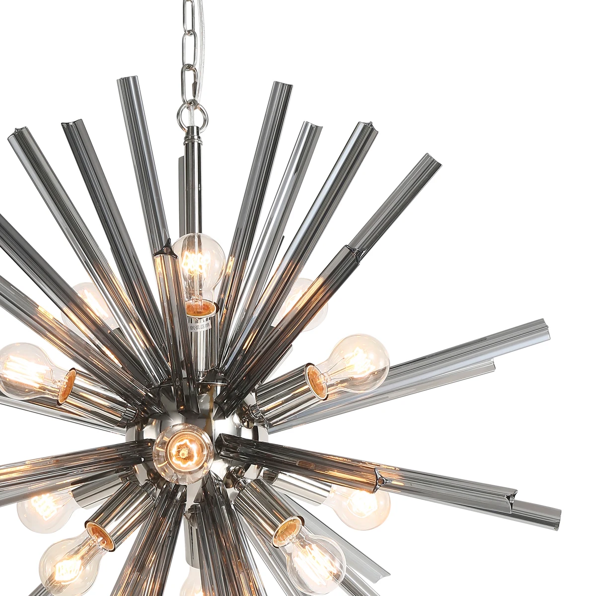 Подвесная люстра Delight Collection Equalizer 771093 от Delight Collection — люстры. Материал — металл, цвет хром, плафон из стекла, цвет плафона дымчатый, форма плафона — шар. Модель имеет 12 ламп, цоколь E14, мощность 40 Вт. Направление света — равномерное. Габариты: высота 1500 мм, ширина 750 мм. Коллекция Equalizer, размеры светильника — 150/75/75.