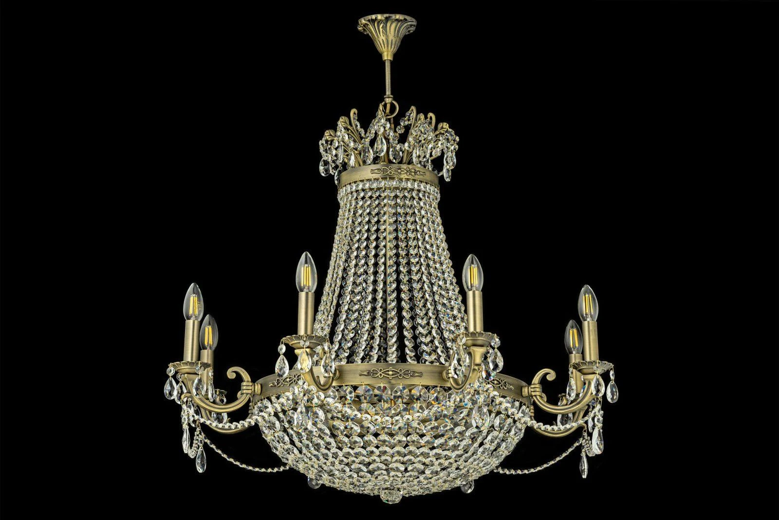 Подвесная люстра Dio D'Arte Lodi Lodi E 1.6.8.600 A от Dio D'Arte, подходит для гостиной, в стиле хрусталь. Материал — металл, цвет бронза, форма плафона — многоярусные. Модель имеет 8 ламп, цоколь E14, мощность 320 Вт, площадь освещения до 17.8 кв. м. Направление света — вверх. Степень защиты IP20. Габариты: высота 750 мм, ширина 810 мм, диаметр 810 мм. Коллекция Lodi Antique.