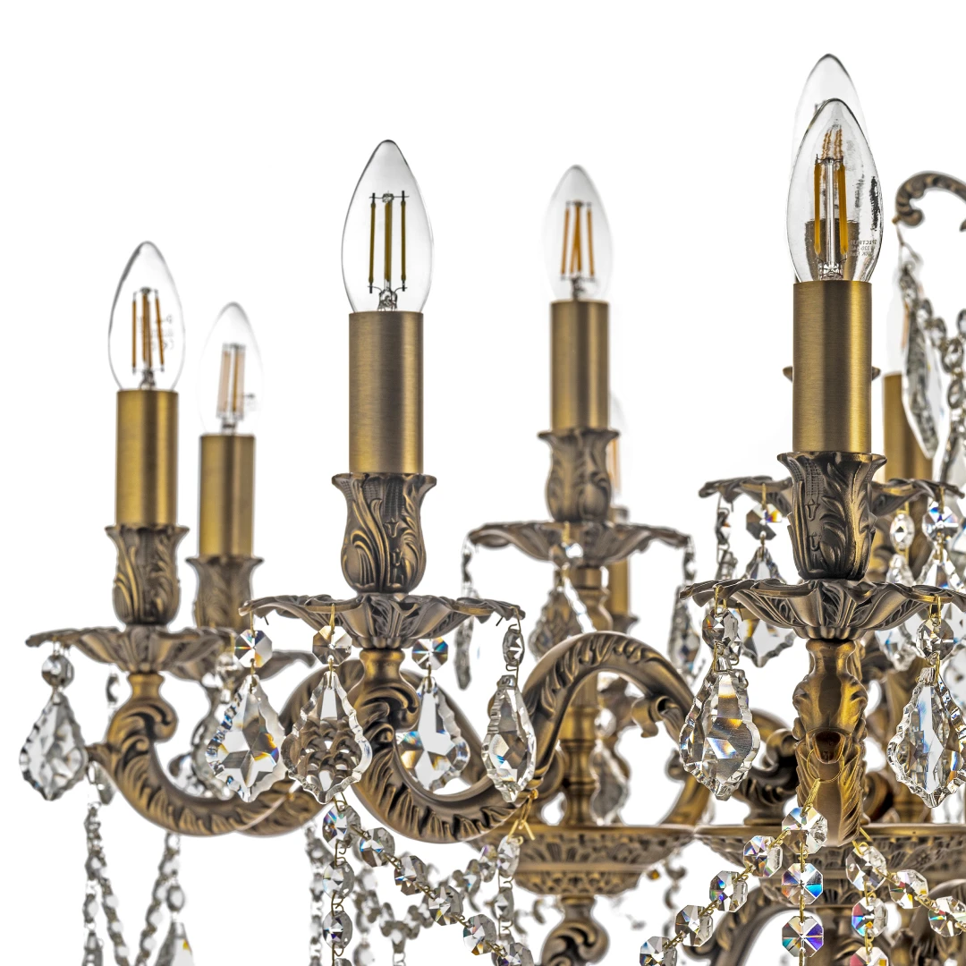 Подвесная люстра Dio D'Arte Opera Opera E 1.1.18.200 A от Dio D'Arte, подходит для гостиной, в стиле хрусталь. Материал — металл, цвет бронза, форма плафона — свечи. Модель имеет 18 ламп, цоколь E14, мощность 1080 Вт, площадь освещения до 21.6 кв. м. Направление света — вверх. Степень защиты IP20. Габариты: высота 880 мм, ширина 1030 мм. Декор — хрустальные подвески, коллекция Opera.