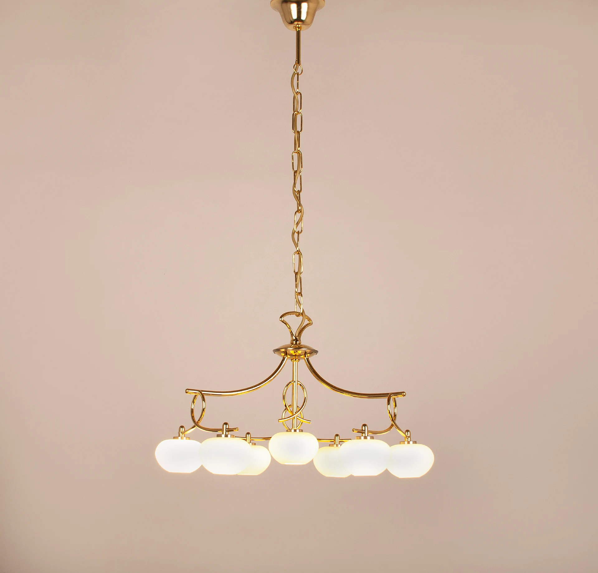 Подвесная люстра Doge Luce 6430 6430/7.27 от Doge Luce, подходит для гостиной, в стиле современный. Материал — металл, цвет золото, плафон из стекла, цвет плафона белый, форма плафона — шар. Модель имеет 7 ламп, цоколь G9, мощность 40 Вт, площадь освещения до 15 кв. м. Степень защиты IP20. Габариты: высота 280 мм, ширина 530 мм, диаметр 530 мм. Коллекция 6430.