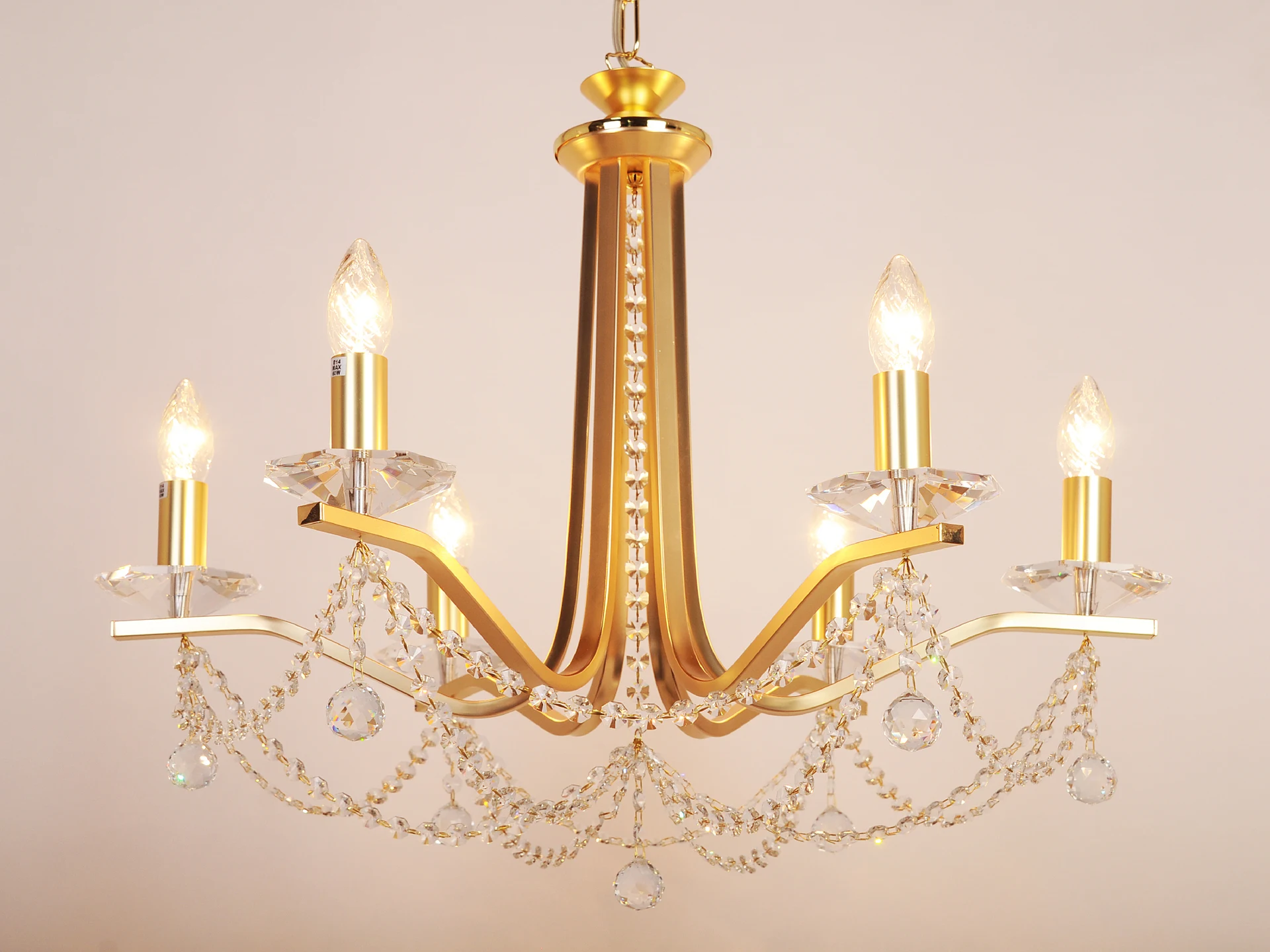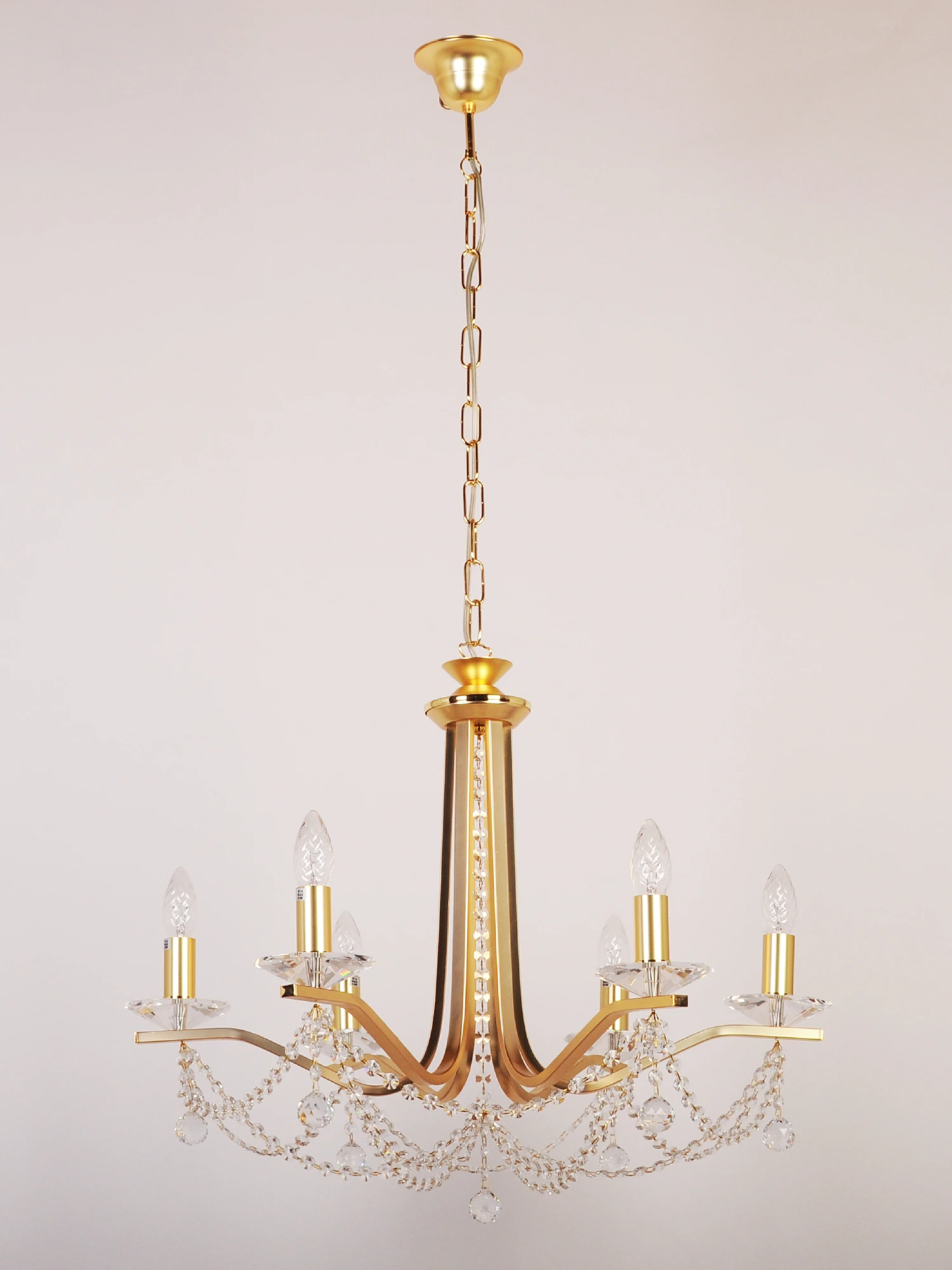 Подвесная люстра Doge Luce A110L06FA.3 от Doge Luce — люстры. Материал — металл, цвет золото, форма плафона — свечи. Модель имеет 6 ламп, цоколь E14, мощность 40 Вт, площадь освещения до 18 кв. м. Направление света — вверх, крепление — крюк. Степень защиты IP20. Габариты: высота 540 мм, ширина 650 мм, диаметр 650 мм. Декор — хрустальные подвески.