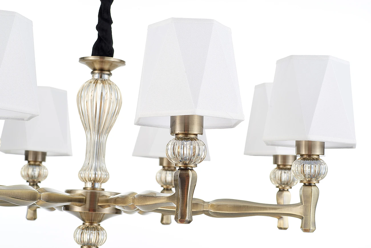 Подвесная люстра Escada Arcadia 672/8S Brass от Escada, подходит для гостиной, для спальни, в стиле классика. Материал — металл, цвет бронза, плафон из ткань, цвет плафона белый, форма плафона — многогранник. Модель имеет 8 ламп, цоколь E27, мощность 60 Вт. Крепление — крюк. Степень защиты IP20. Габариты: высота 830 мм, ширина 905 мм, диаметр 160 мм. Коллекция Arcadia.