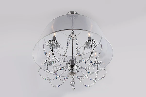 Подвесная люстра Eurosvet Gloria 10068/5 хром/прозрачный хрусталь Strotskis от Eurosvet, подходит для спальни, в стиле арт-деко. Материал — металл, цвет хром, плафон из ткань, цвет плафона серебряный, форма плафона — круглый абажур. Модель имеет 5 ламп, цоколь E14, мощность 40 Вт. Направление света — вниз. Габариты: высота 420 мм, ширина 560 мм. Декор — хрустальные подвески, коллекция Gloria.
