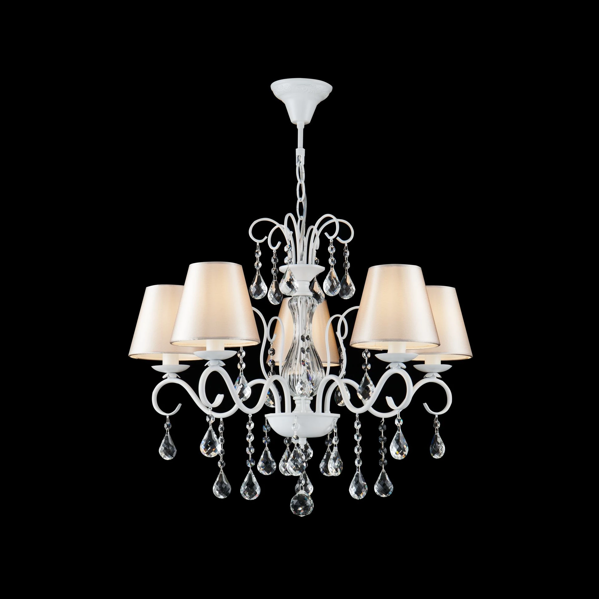 Подвесная люстра Freya Lucretia FR2032PL-05W от Freya, подходит для спальни, в стиле арт-деко. Материал — металл, цвет белый, форма плафона — круглый абажур. Модель имеет 5 ламп, цоколь E14, мощность 40 Вт. Направление света — вверх. Габариты: высота 1448 мм, ширина 637 мм, диаметр 637 мм. Декор — хрустальные подвески, коллекция Lucretia.