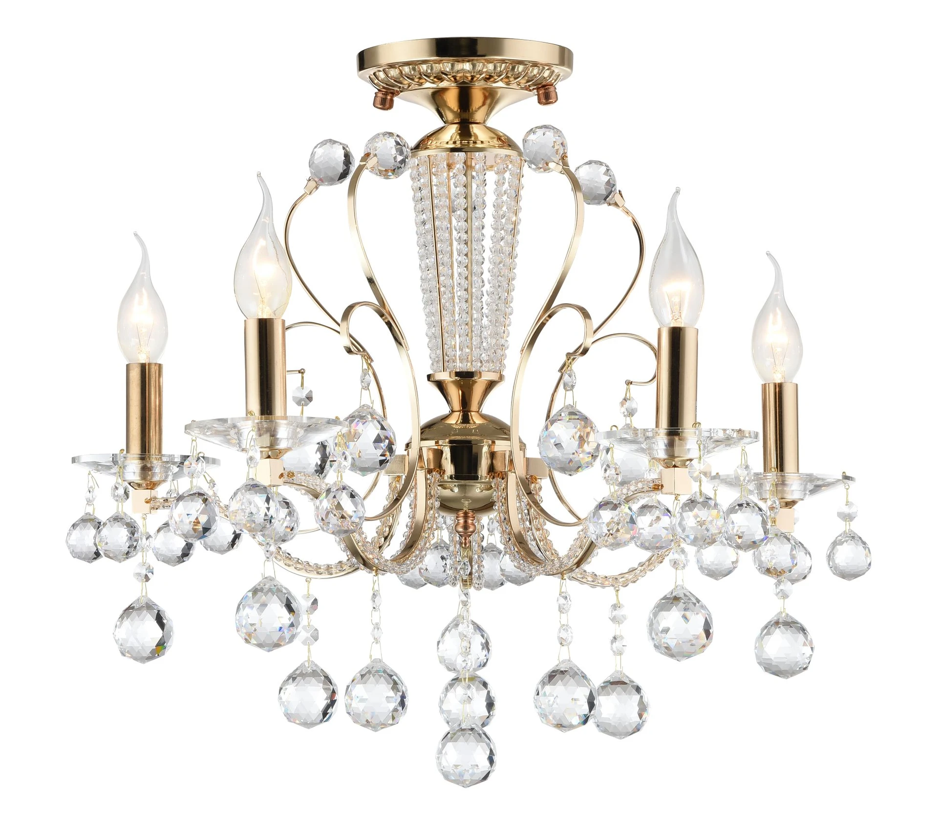 Потолочная люстра Freya Marlin FR1130-PL-05-G от Freya, подходит для гостиной, в стиле классика. Материал — металл, цвет золото, форма плафона — свечи. Модель имеет 5 ламп, цоколь E14, мощность 40 Вт. Направление света — вверх, крепление — крюк. Степень защиты IP20. Габариты: высота 780 мм, ширина 540 мм, диаметр 540 мм. Декор — хрустальные подвески, коллекция Marlin.