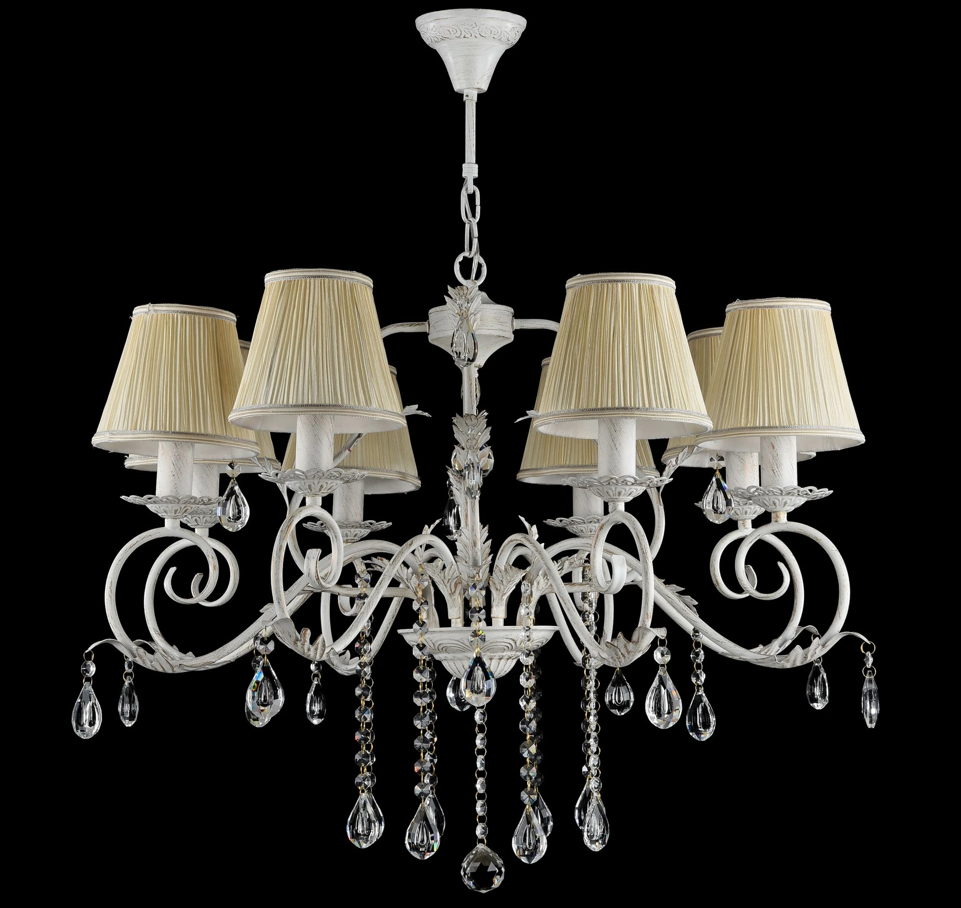 Подвесная люстра Freya Susie FR3403-PL-08-WG от Freya, подходит для спальни, в стиле флористика. Материал — металл, цвет белый, плафон из пвх, форма плафона — круглый абажур. Модель имеет 8 ламп, цоколь E14, мощность 60 Вт. Направление света — вверх, крепление — крюк. Степень защиты IP20. Габариты: высота 950 мм, ширина 780 мм, диаметр 780 мм. Декор — хрустальные подвески, коллекция Susie.