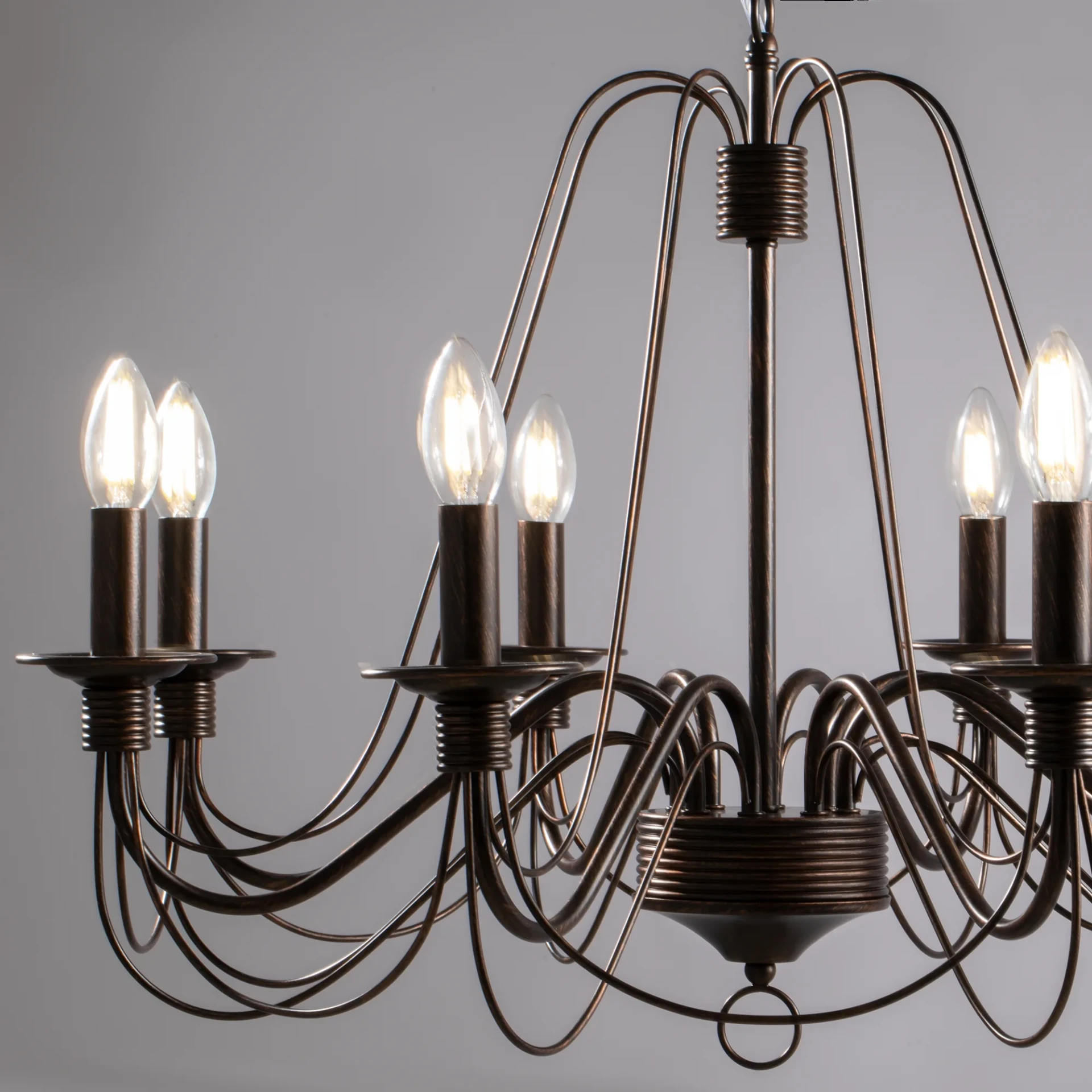 Подвесная люстра Freya Velia FR2046-PL-08-BR от Freya, подходит для гостиной, в стиле классика. Материал — металл, цвет коричневый, форма плафона — свечи. Модель имеет 8 ламп, цоколь E14, мощность 60 Вт. Направление света — вверх, крепление — крюк. Степень защиты IP20. Габариты: высота 520 мм, ширина 720 мм, диаметр 720 мм. Коллекция Velia.