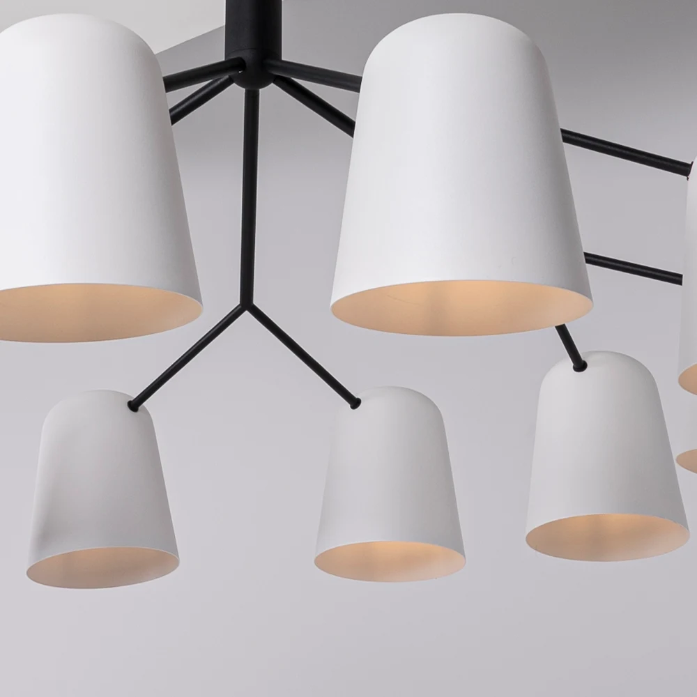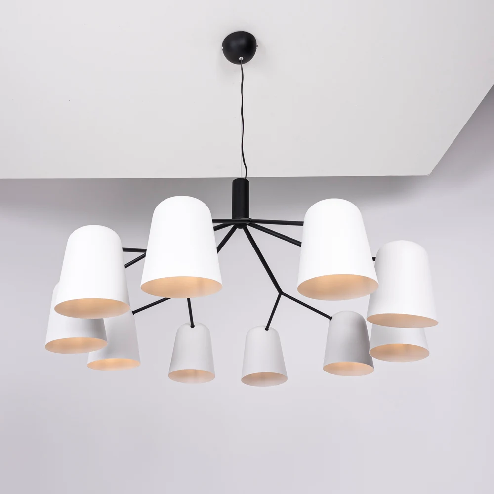 Подвесная люстра ImperiumLoft Skym01 203499-26 от ImperiumLoft, подходит для гостиной, в стиле современный. Материал — металл, цвет чёрный, цвет плафона белый, форма плафона — круглый плафон. Модель имеет 10 ламп, цоколь E14, мощность 400 Вт. Степень защиты IP20. Габариты: высота 600 мм, ширина 1050 мм, диаметр 1050 мм. Коллекция Skym01.