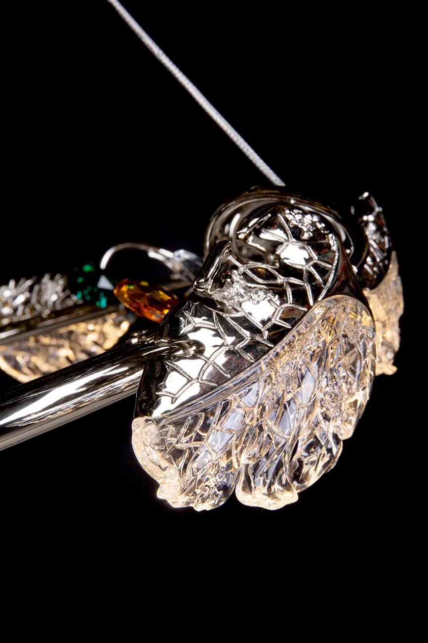 Подвесная люстра LEON Ilana LE3036/800 CH от LEON — люстры. Материал — металл гальванизированный, цвет хром, плафон из высококачественный акрил, цвет плафона прозрачный, форма плафона — круглые. Модель — цоколь LED, мощность 40 Вт. Направление света — равномерное, цветовая температура 3000. Габариты: высота 1000 мм, диаметр 800 мм. Декор — лепестки, ветки, коллекция Ilana, световой поток — 2400.
