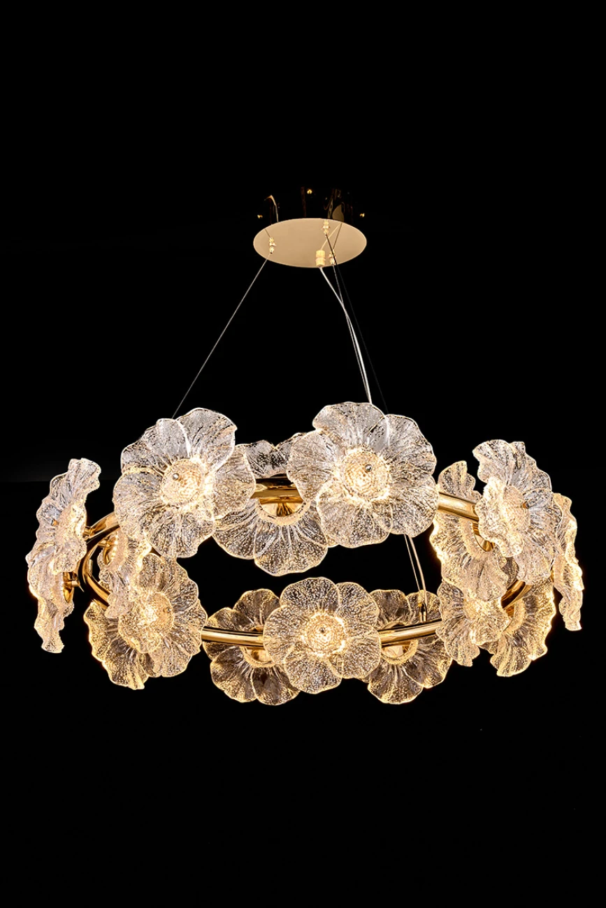 Подвесная люстра LEON Violetta LE3018/800 GD от LEON — люстры. Материал — металл гальванизированный, цвет золото, плафон из высококачественный хрусталь в виде цветка, цвет плафона прозрачный, форма плафона — круглые. Модель — цоколь LED, мощность 80 Вт. Направление света — равномерное, цветовая температура 3000. Габариты: высота 1200 мм, диаметр 800 мм. Декор — цветы, коллекция Violetta, световой поток — 8800.
