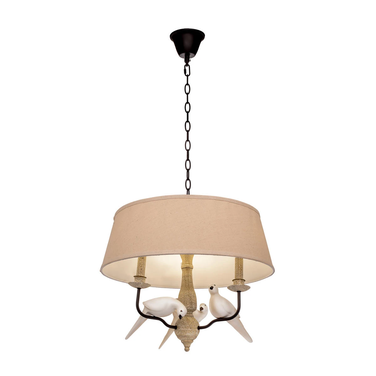 Люстра с птичками Birds LOFT1029A-2 Loft It от Loft It, подходит для спальни, в стиле классика. Материал — металл, цвет коричневый, плафон из текстиль, форма плафона — круглый абажур. Модель имеет 3 лампы, цоколь E14, мощность 120 Вт, площадь освещения до 6 кв. м. Направление света — вверх. Степень защиты IP20. Габариты: высота 1000 мм, ширина 550 мм, диаметр 550 мм. Декор — птички, коллекция Birds.