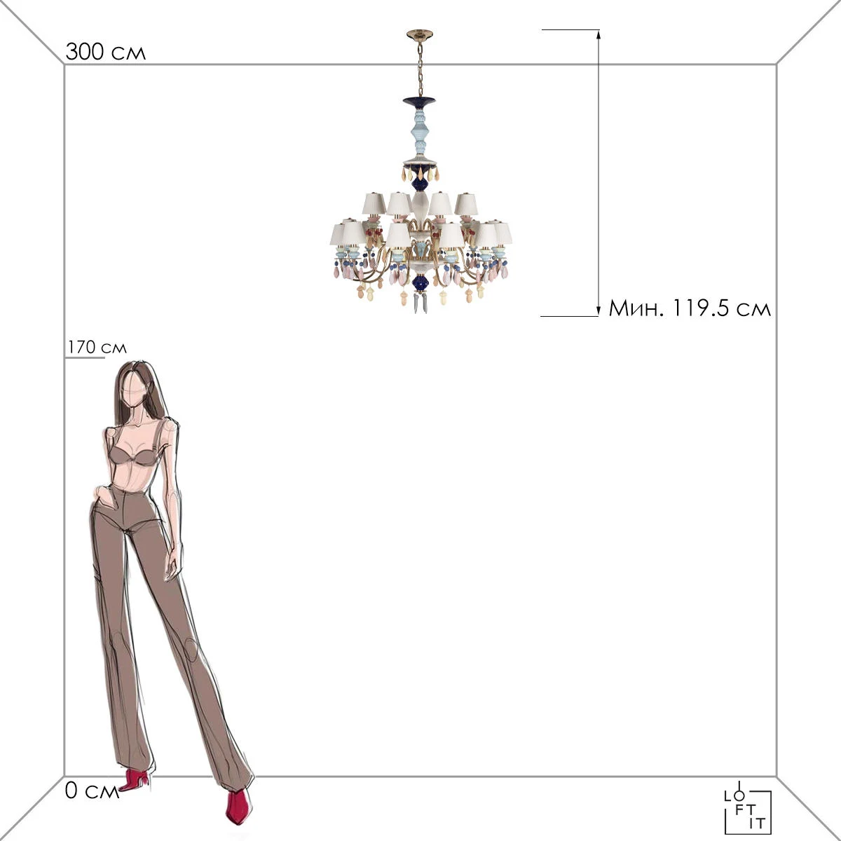 Подвесная люстра Loft It Grace 10203/12+8 Mult от Loft It, подходит для гостиной, в стиле арт-деко. Материал — металл, цвет разноцветный, плафон из керамика, цвет плафона белый, форма плафона — круглый плафон. Модель имеет 20 ламп, цоколь E14, мощность 800 Вт. Габариты: высота 1745 мм, ширина 930 мм, диаметр 930 мм. Декор — хрустальные подвески, коллекция Grace.