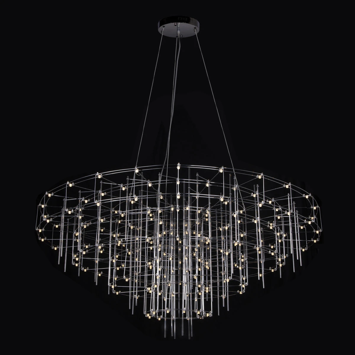 Подвесная люстра Loft It Spy 10258/1500 от Loft It — люстры. Материал — металл, цвет хром. Модель имеет 1 лампу, цоколь LED, мощность 114 Вт. Цветовая температура 3000, крепление — планка. Степень защиты IP20. Габариты: высота 3640 мм, ширина 1500 мм, диаметр 1500 мм. Коллекция Spy, световой поток — 7980.