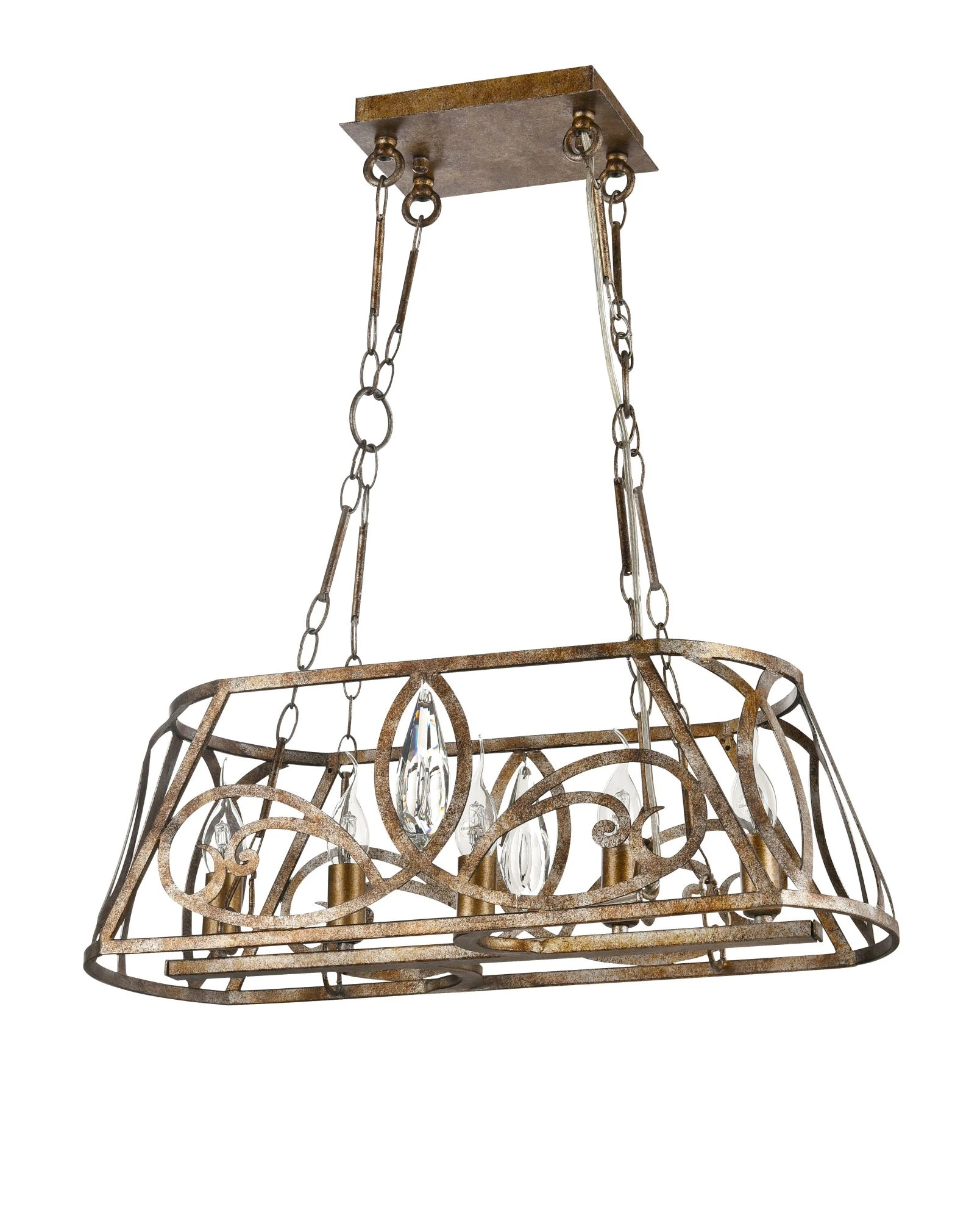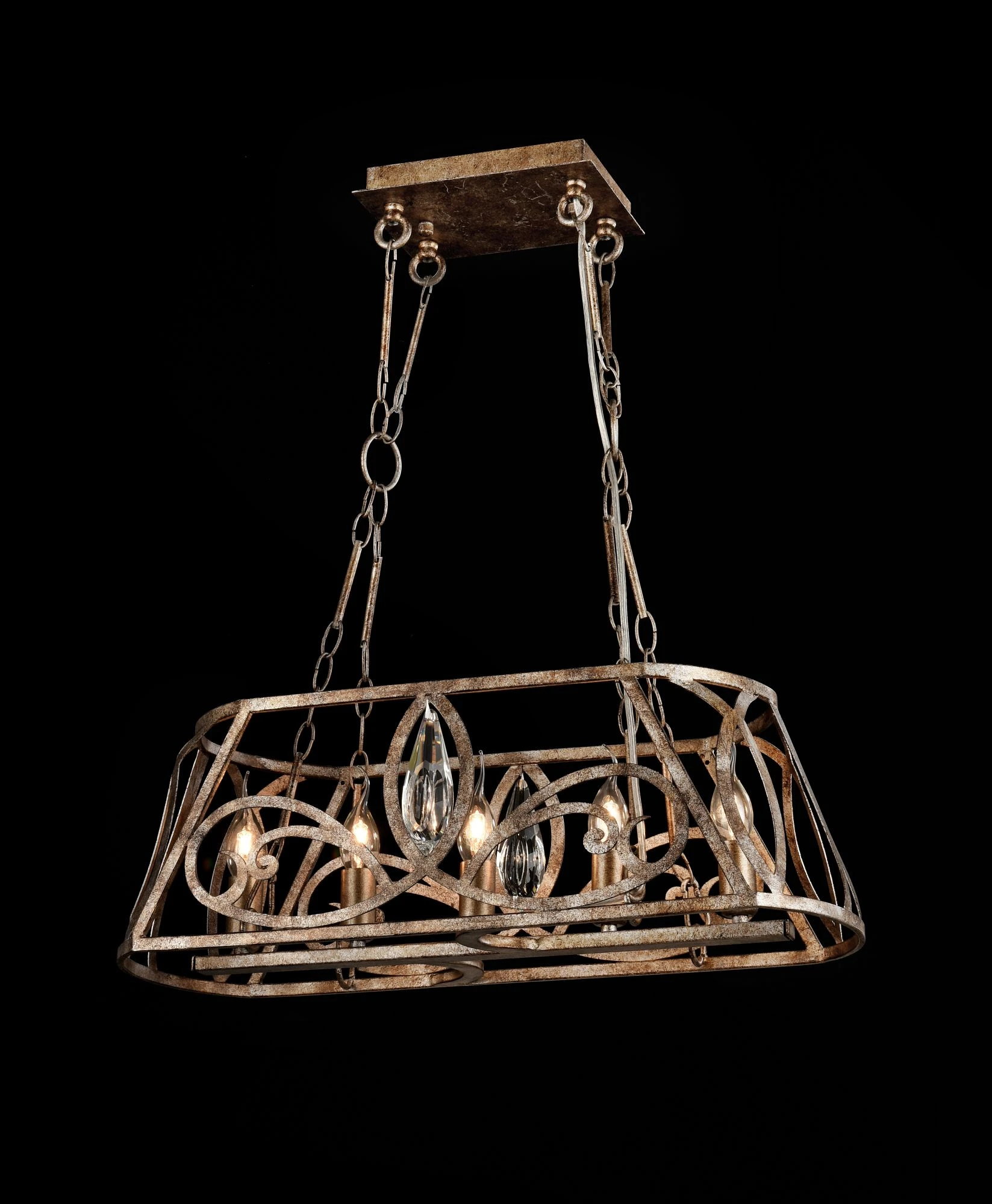 Подвесная люстра Maytoni Eisner H237-05-G от Maytoni, подходит для кухни, для гостиной, в стиле кованые. Материал — металл, цвет золото, плафон из сталь, форма плафона — решетки. Модель имеет 5 ламп, цоколь E14, мощность 40 Вт. Направление света — вверх, крепление — планка. Степень защиты IP20. Габариты: высота 940 мм, ширина 642 мм, глубина 232 мм. Декор — хрустальные подвески, коллекция Eisner.