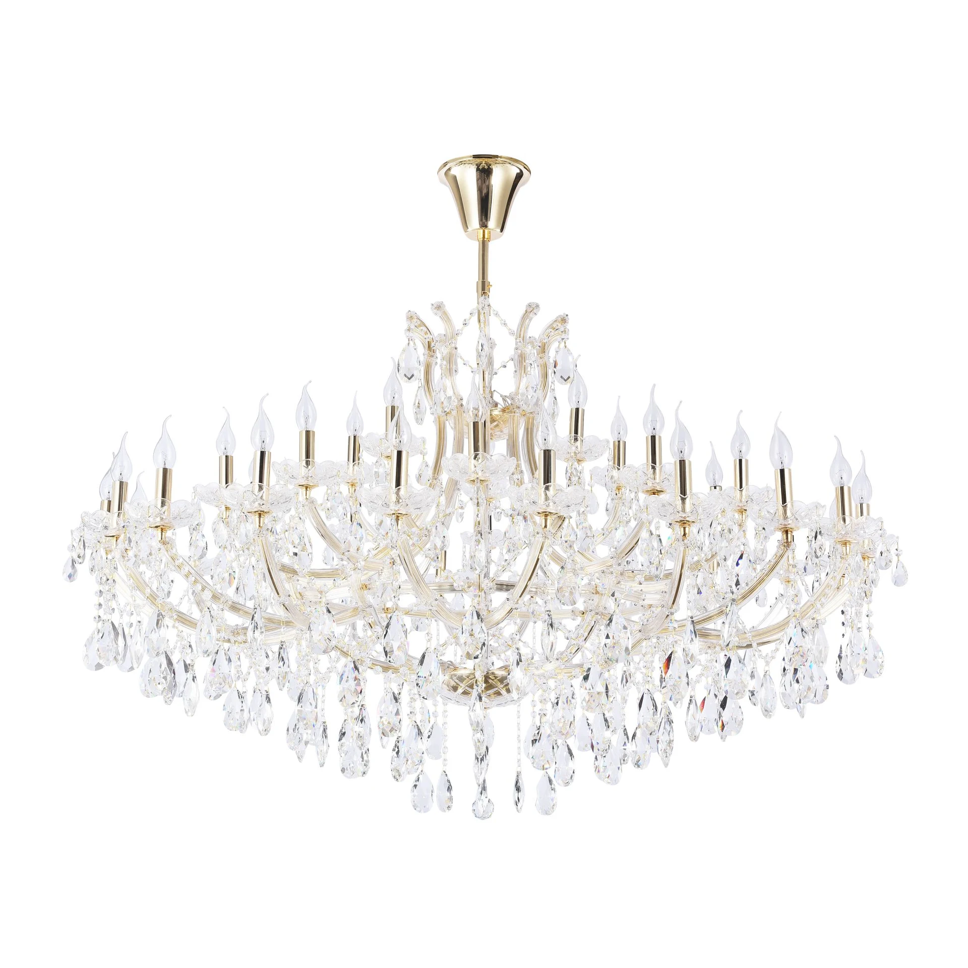 Подвесная хрустальная люстра Erna Maytoni DIA880-PL-35-G от Maytoni, подходит для гостиной, в стиле классика, хрусталь. Материал — металл, цвет золото, форма плафона — многоярусные. Модель имеет 35 ламп, цоколь E14, мощность 40 Вт. Направление света — вверх, крепление — крюк. Степень защиты IP20. Габариты: высота 3040 мм, ширина 1475 мм, диаметр 1475 мм. Коллекция Erna.