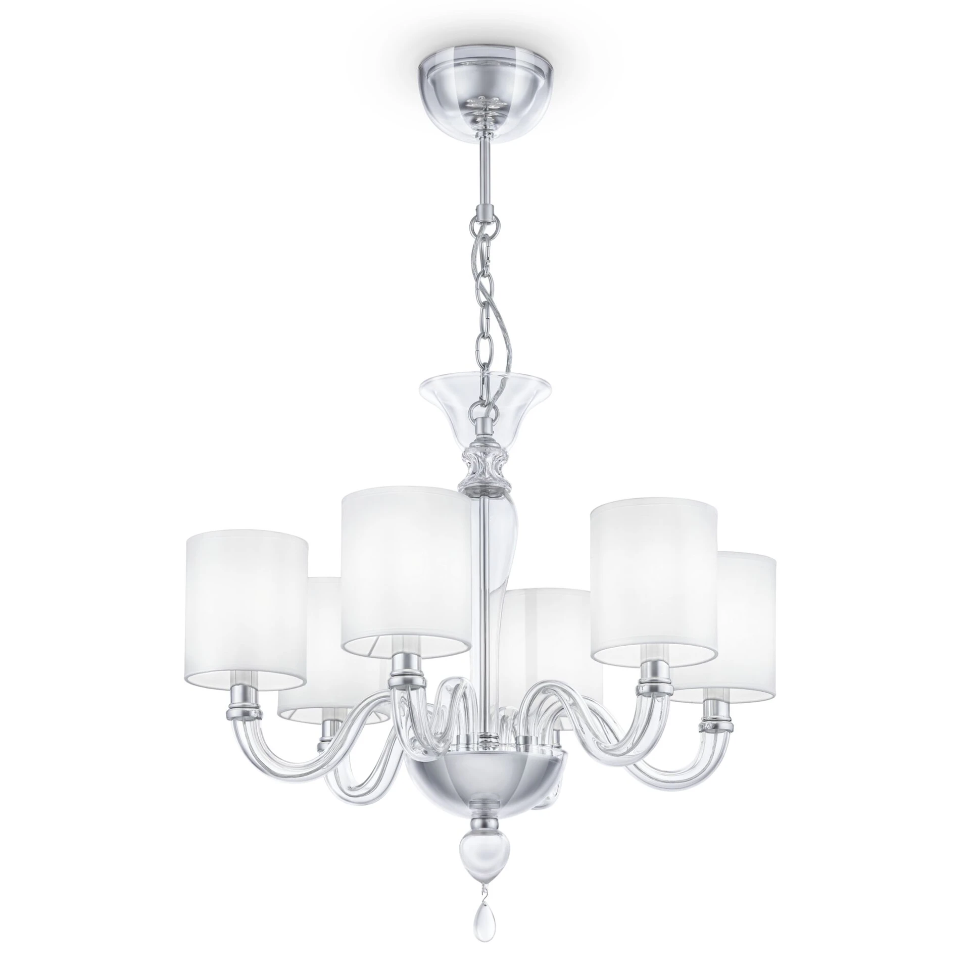 Подвесная люстра Maytoni Leti DIA012PL-06TR от Maytoni, подходит для гостиной, для спальни, в стиле современный. Материал — металл, цвет прозрачный, плафон из текстиль на пвх, цвет плафона белый, форма плафона — цилиндр. Модель имеет 6 ламп, цоколь E14, мощность 40 Вт. Направление света — вверх, крепление — крюк. Степень защиты IP20. Габариты: высота 1820 мм, ширина 680 мм, диаметр 680 мм. Коллекция Leti.