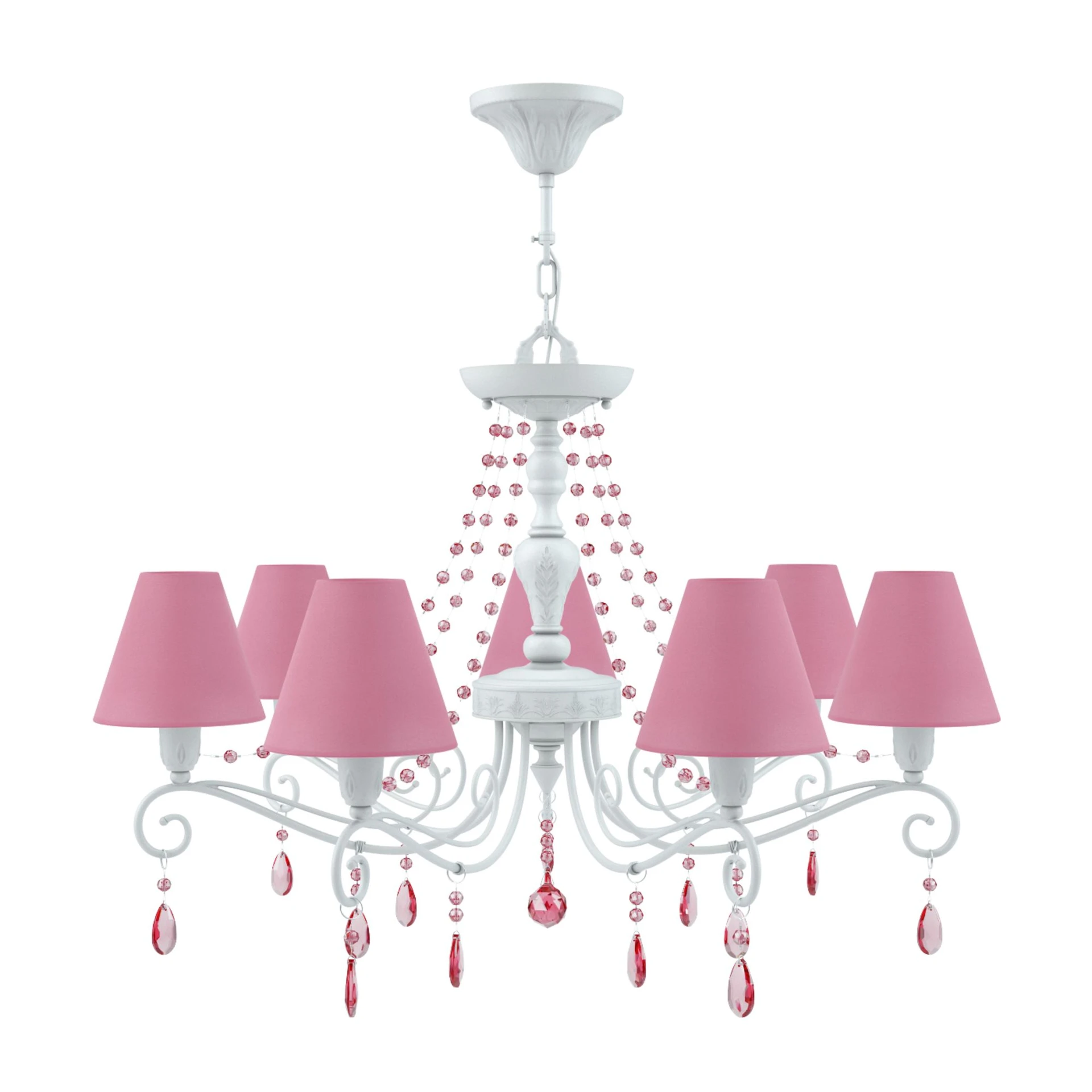 Подвесная люстра Maytoni Provence E4-07-WM-LMP-O-27-CRL-E4-07-PK-DN от Maytoni, подходит для гостиной, в стиле классика. Материал — металл, цвет белый, плафон из текстиль на пвх, цвет плафона розовый, форма плафона — круглый абажур. Модель имеет 7 ламп, цоколь E14, мощность 40 Вт. Направление света — вверх, крепление — крюк. Степень защиты IP20. Габариты: высота 980 мм, ширина 850 мм, диаметр 850 мм. Декор — хрустальные подвески, коллекция Provence.